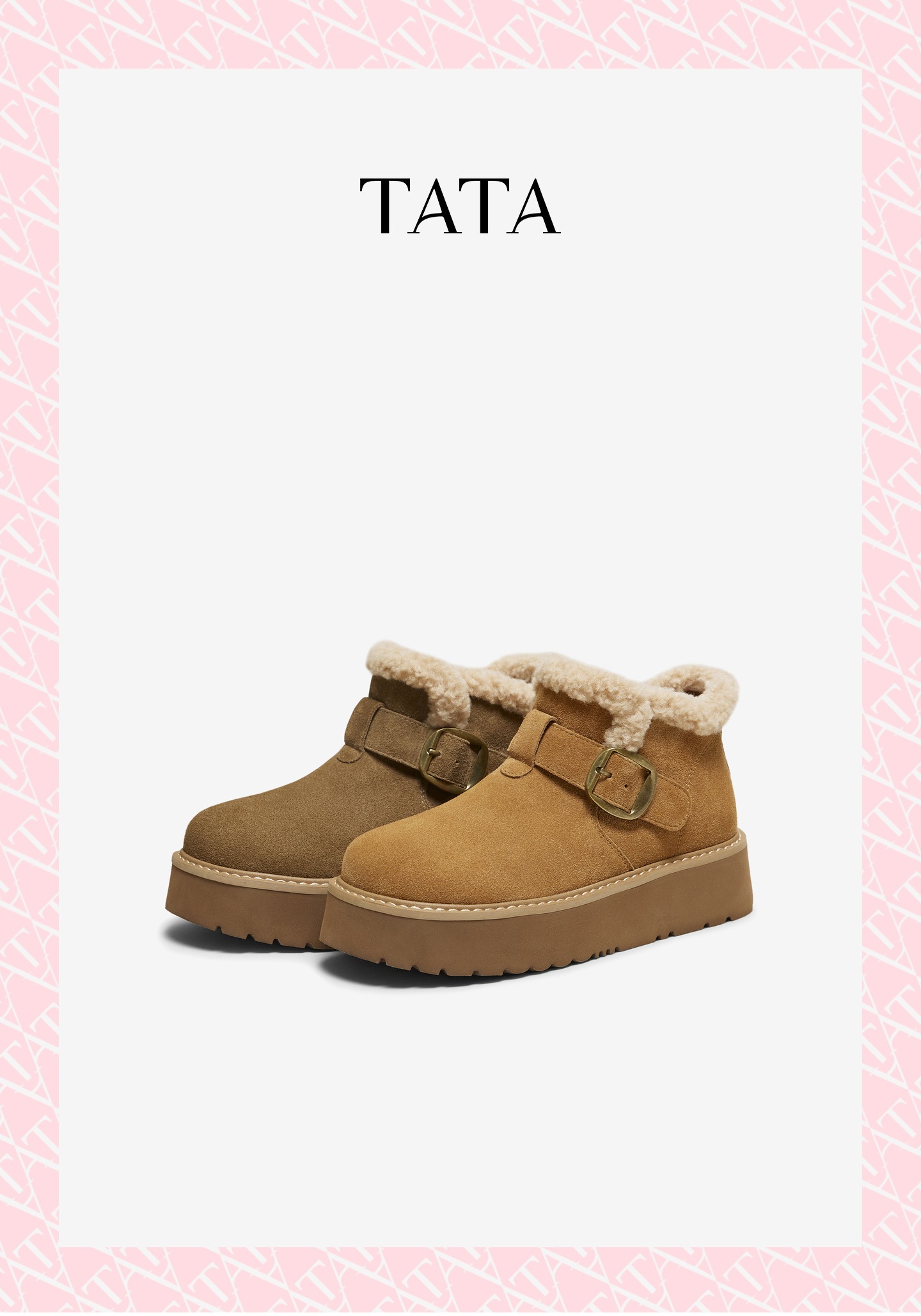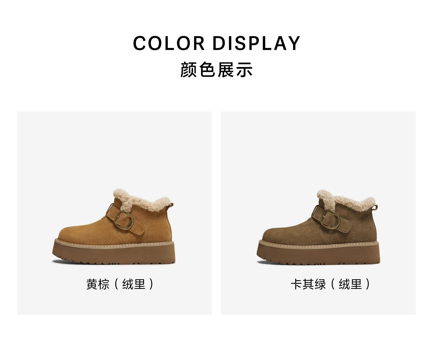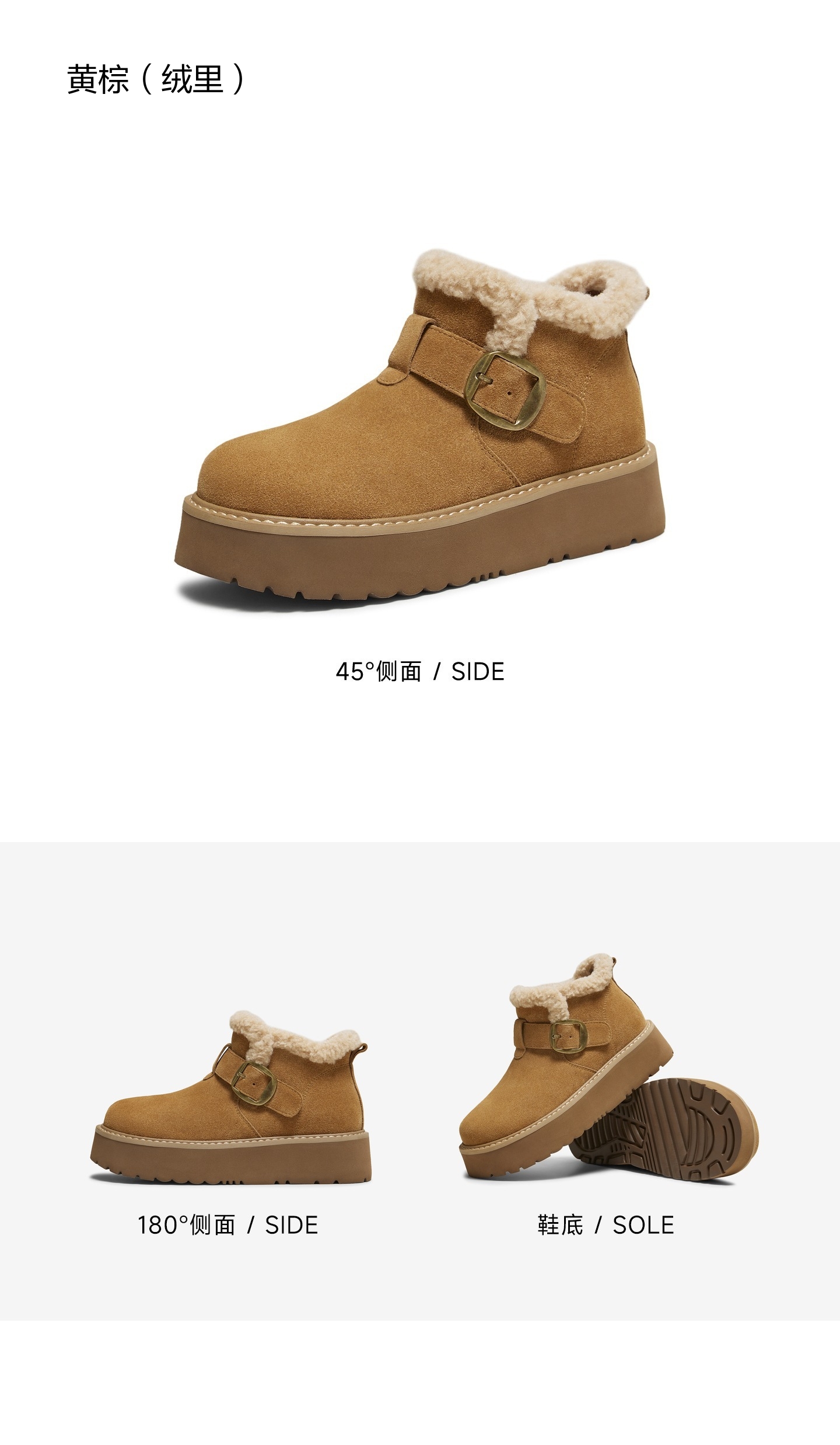 | 帮面材质:牛剖层革 | 配跟:无 | 靴筒口围:26CM | 上市时间:2025年冬季 | 鞋类流行款式:雪地靴 |