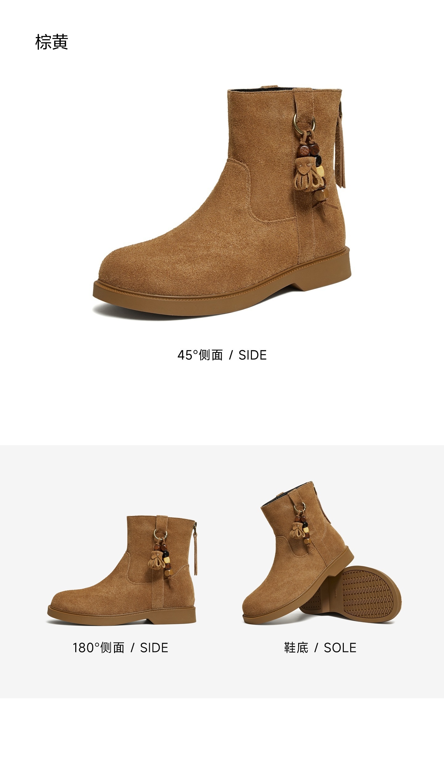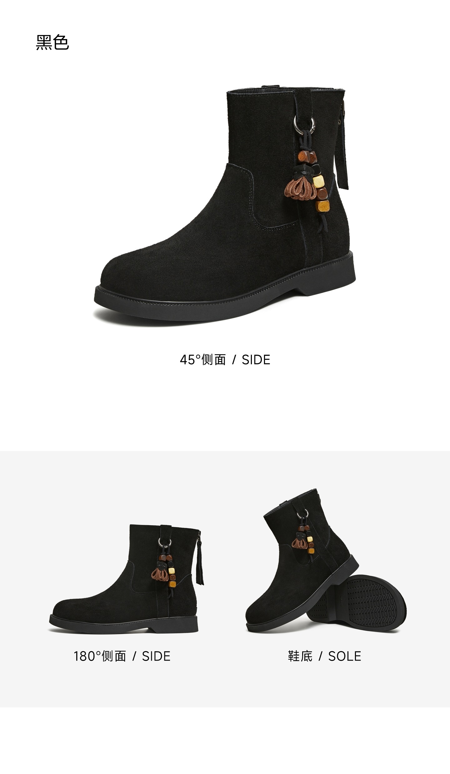 | 鞋底材质:橡胶底 | 靴筒内里材质:织物面料 | 内增高:无 | 鞋面材质:牛皮革 | 闭合方式:后拉链 |