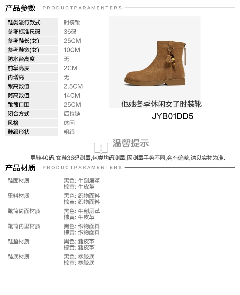 | 款式季节:冬季 | 前掌高度:2CM | 皮质特征:软面皮 | 防水台高度:无 |