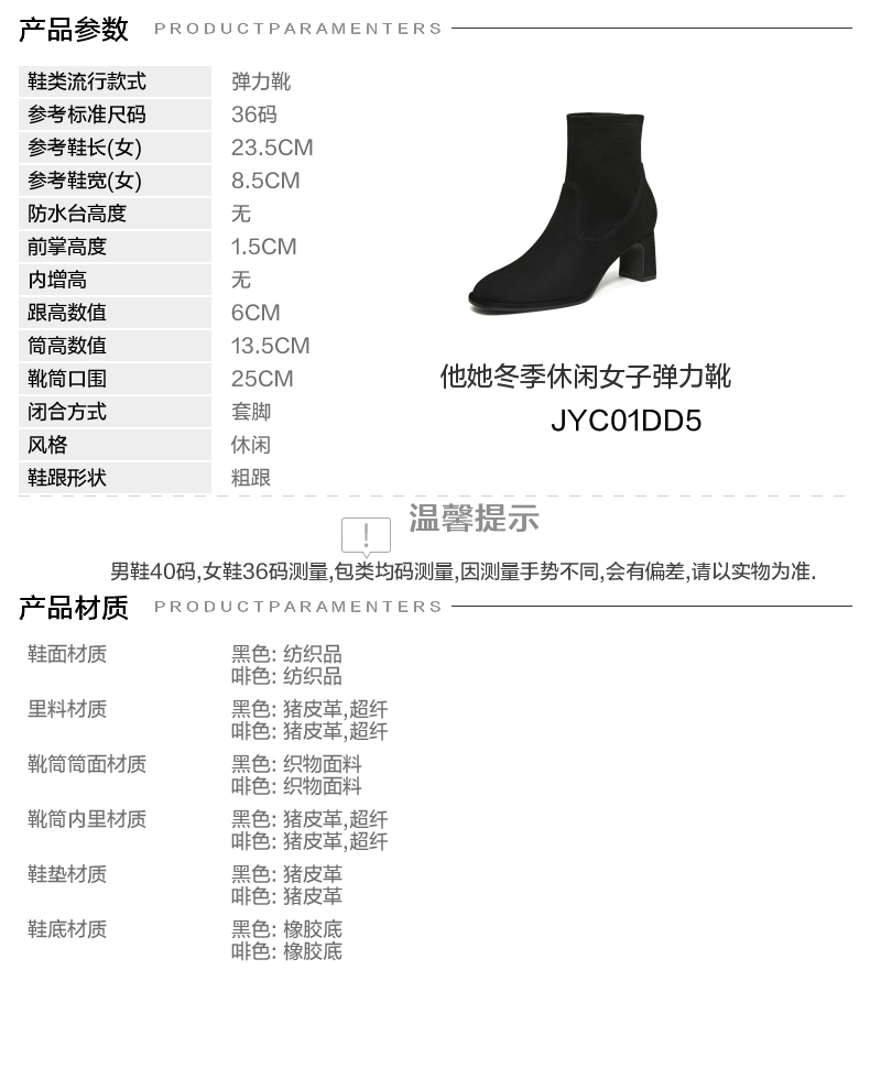 | 帮面材质:织物 | 配跟:有 | 靴筒口围:25CM | 上市时间:2025年冬季 | 鞋类流行款式:弹力靴 |