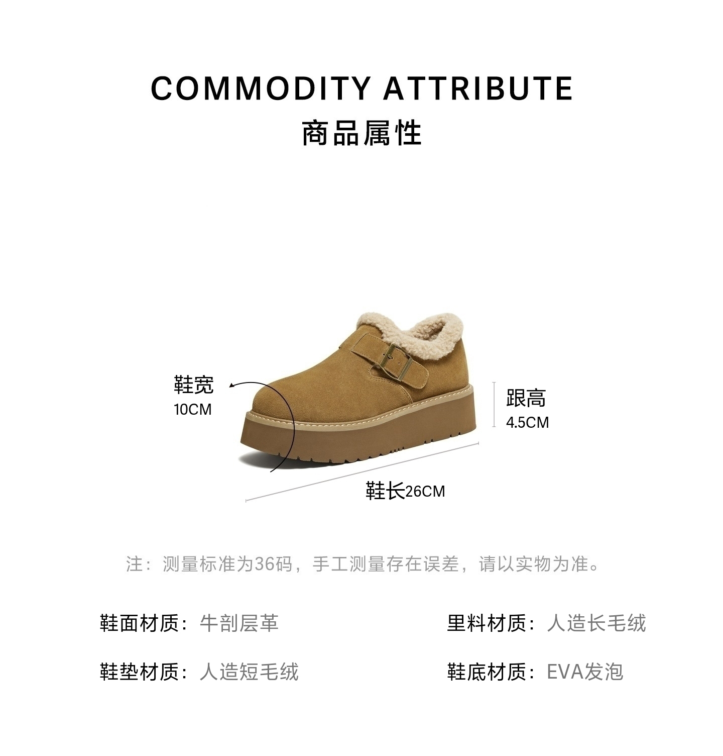 | 色系:棕色 | 跟高数值:4.5CM | 适用人群:女子 | 性别:女子 | 里料材质:人造长毛绒 |