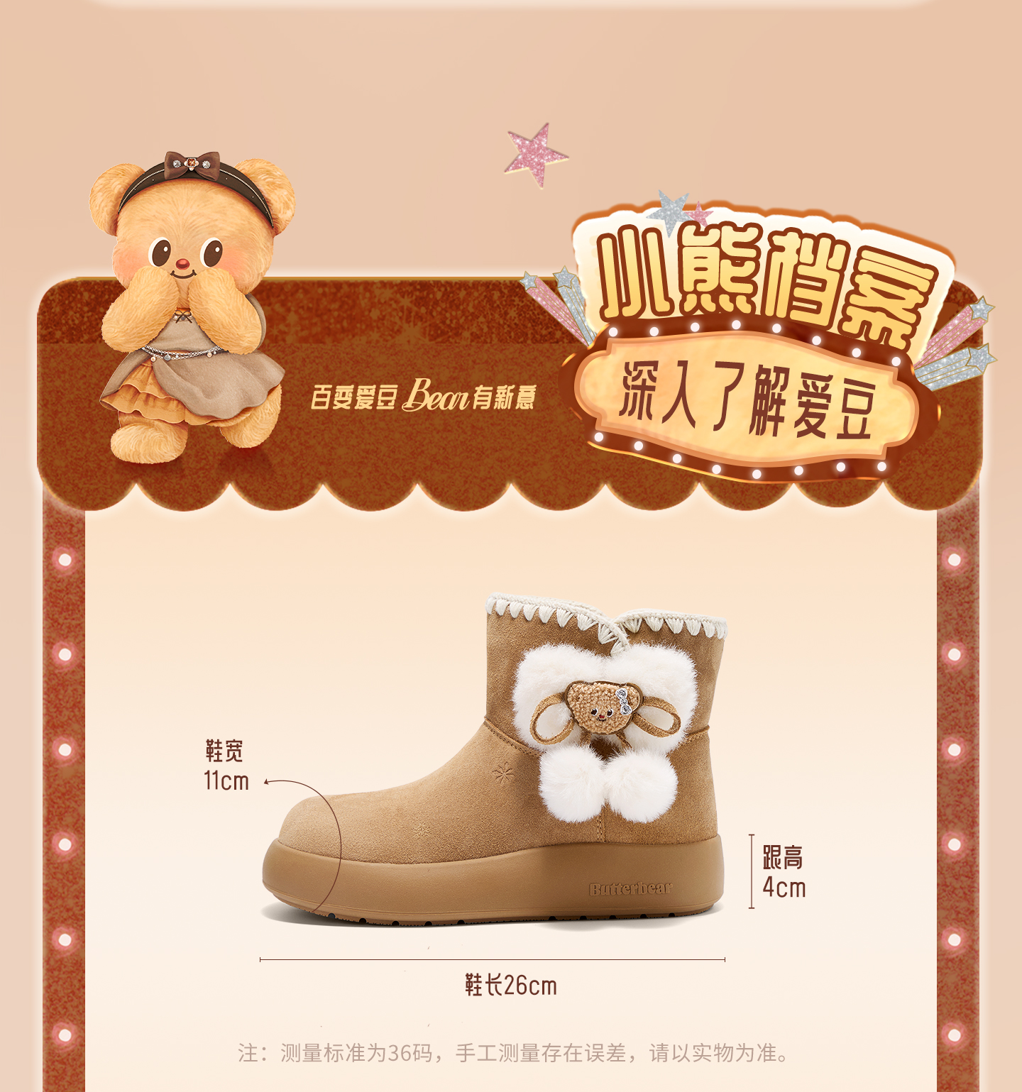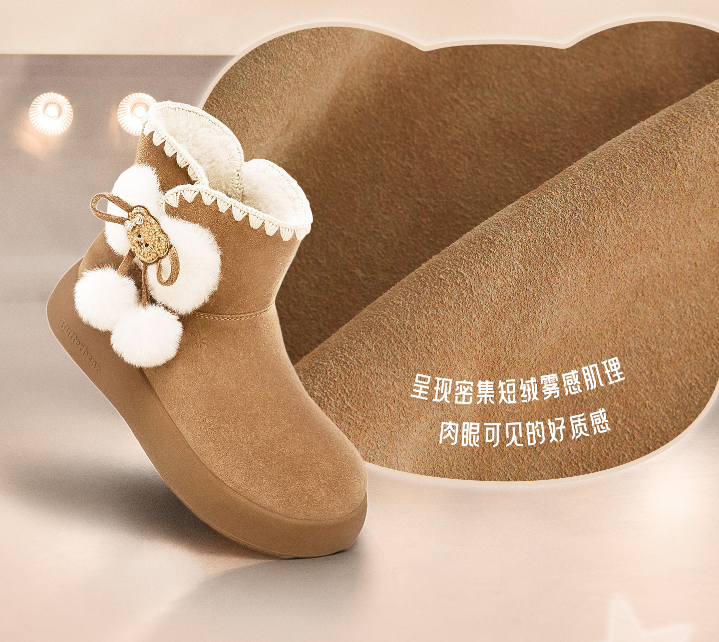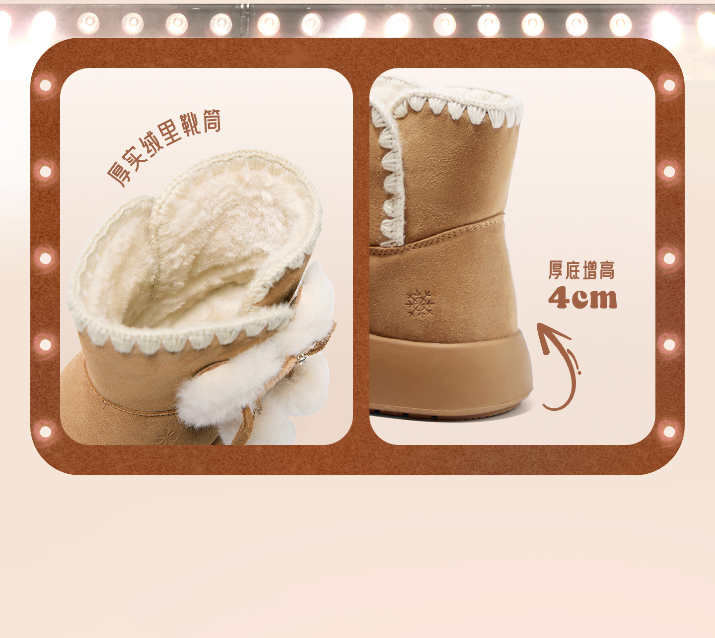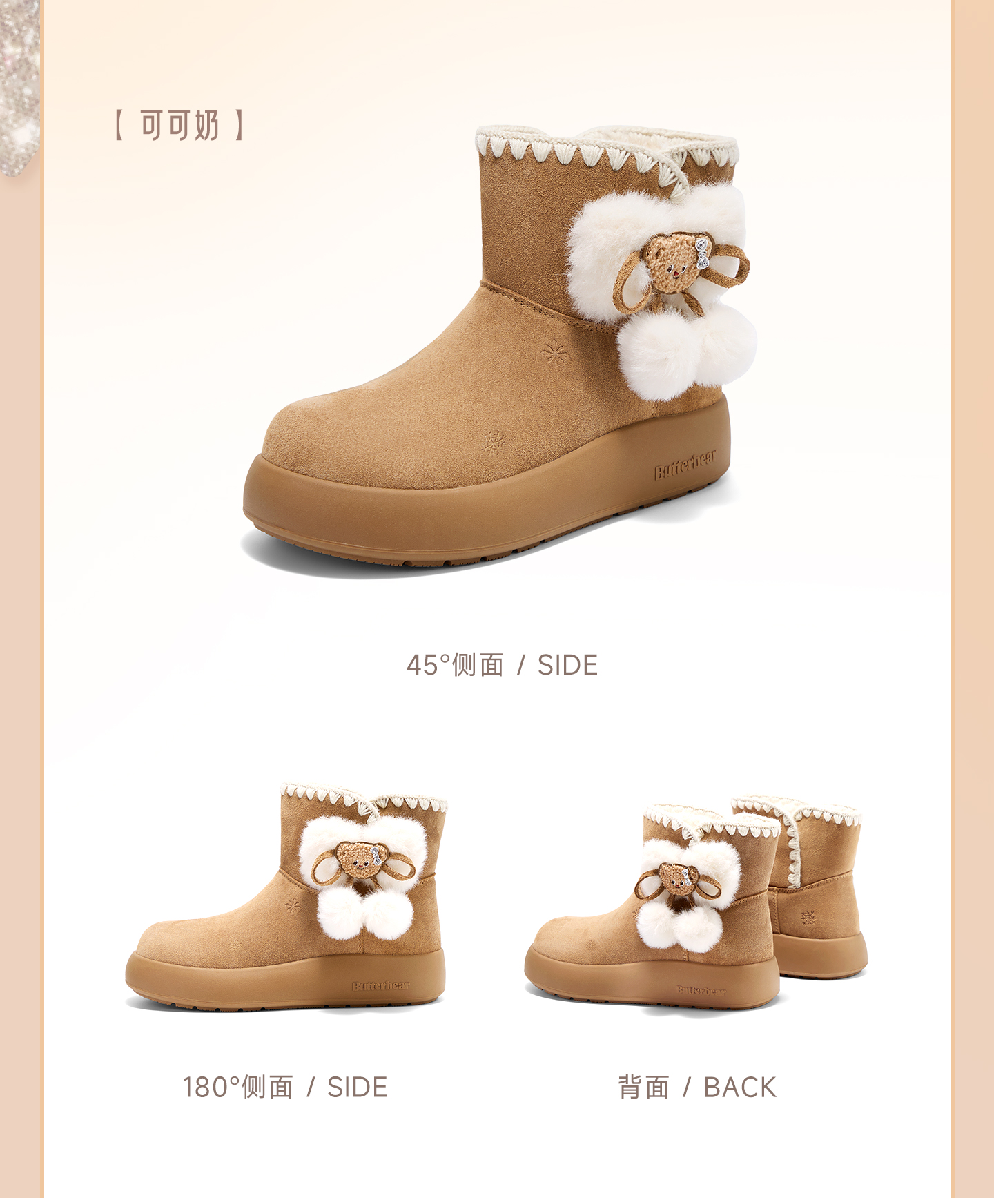 | 帮面材质:牛剖层革 | 配跟:无 | 靴筒口围:33CM | 上市时间:2025年冬季 | 鞋类流行款式:雪地靴 |