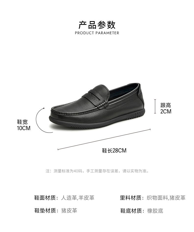 | 风格:简约 | 色系:黑色 | 跟高数值:2CM | 40码鞋宽参考(男):10CM | 性别:男子 |