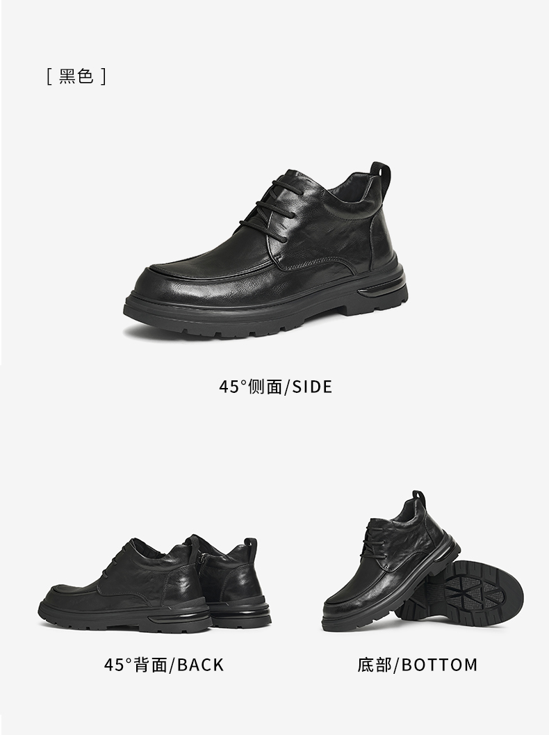 | 制鞋工艺:胶贴皮鞋 | 款式季节:冬季 | 鞋垫材质:猪皮革 | 渠道划分:线下同步 | 皮质特征:软面皮 |