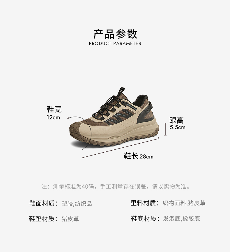 | 风格分类:老爹鞋 | 上市时间:2025年春季 | 生产/经销/进口厂家:丽荣鞋业(深圳)有限公司 | 鞋类流行款式:老爹鞋 | 鞋头款式:圆头 |