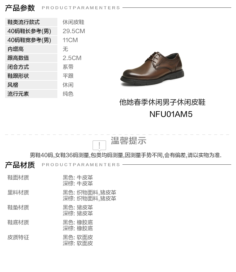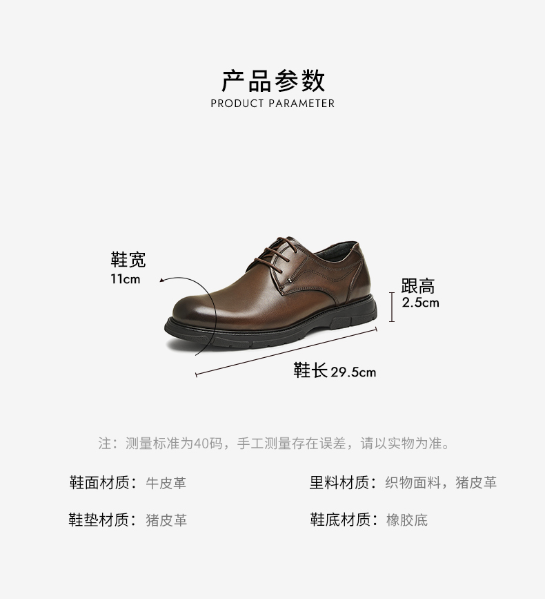 | 40码鞋长参考(男):29.5CM | 鞋帮:低帮 | 鞋底材质:橡胶底 | 内增高:无 | 鞋面材质:牛皮革 |