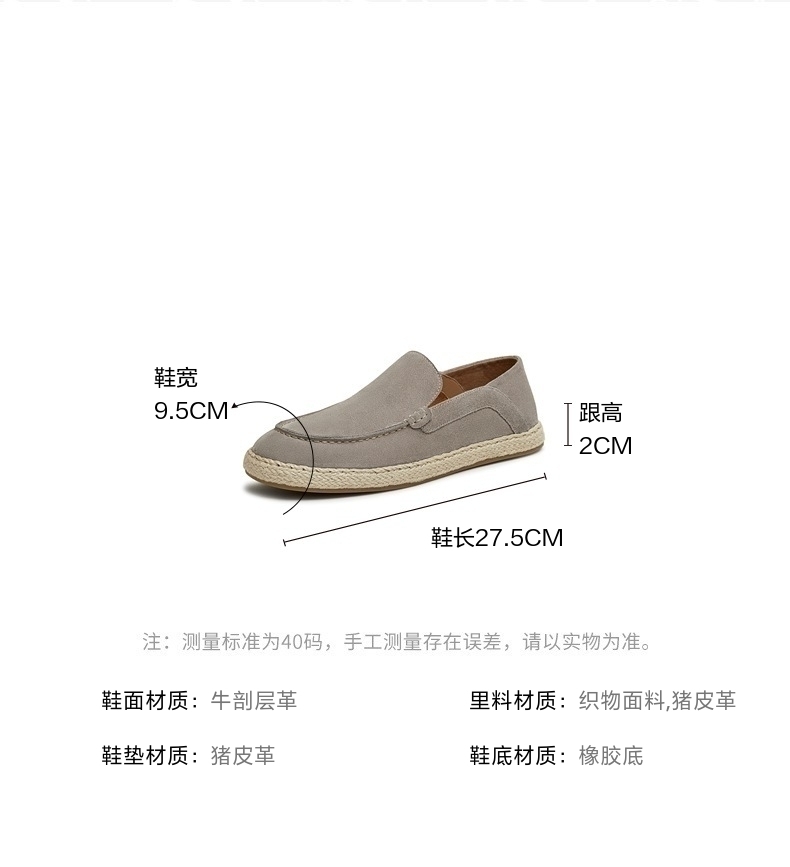 里料材质:猪皮革织物面料 上市时间:2025年夏季 制鞋工艺:胶贴皮鞋 款式季节:夏季 鞋垫材质:猪皮革