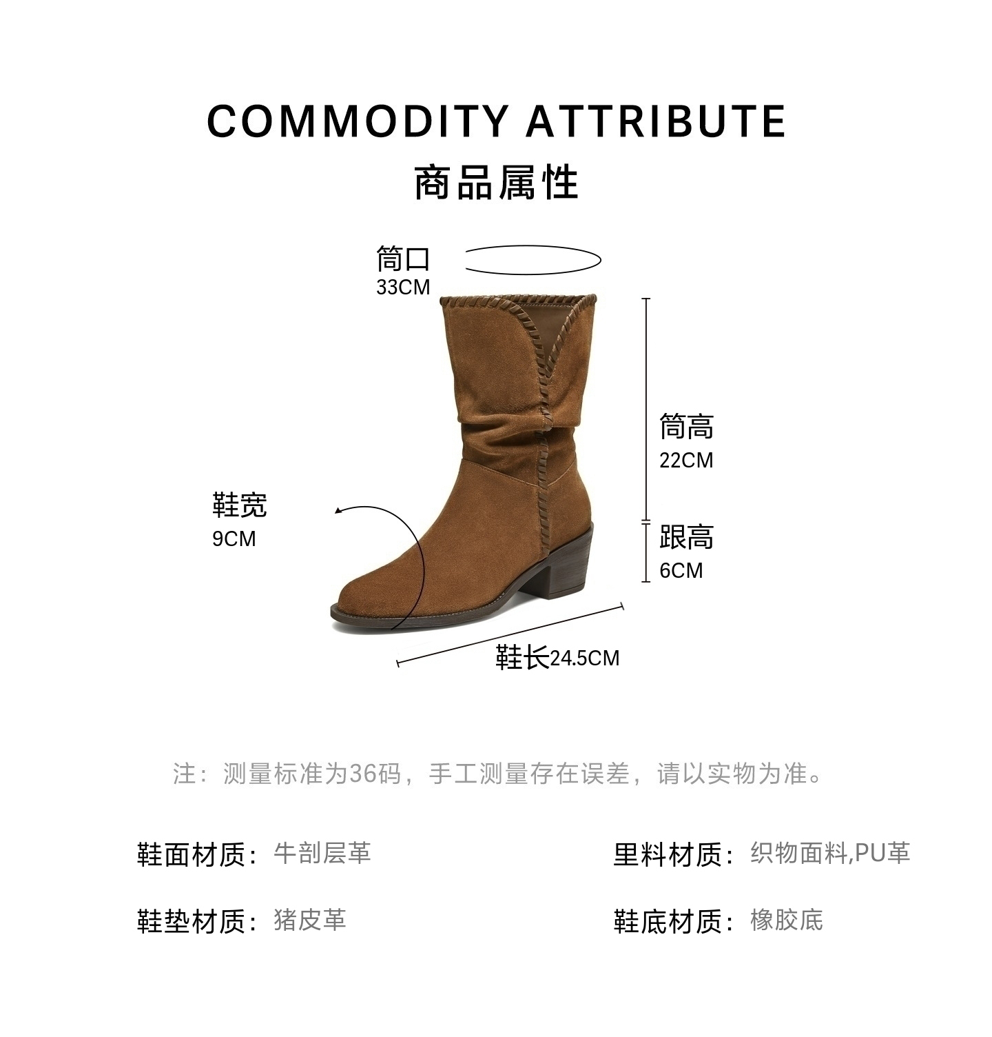 | 配跟:有 | 靴筒口围:33CM | 上市时间:2025年冬季 | 鞋类流行款式:西部靴 | 鞋头款式:圆头 |