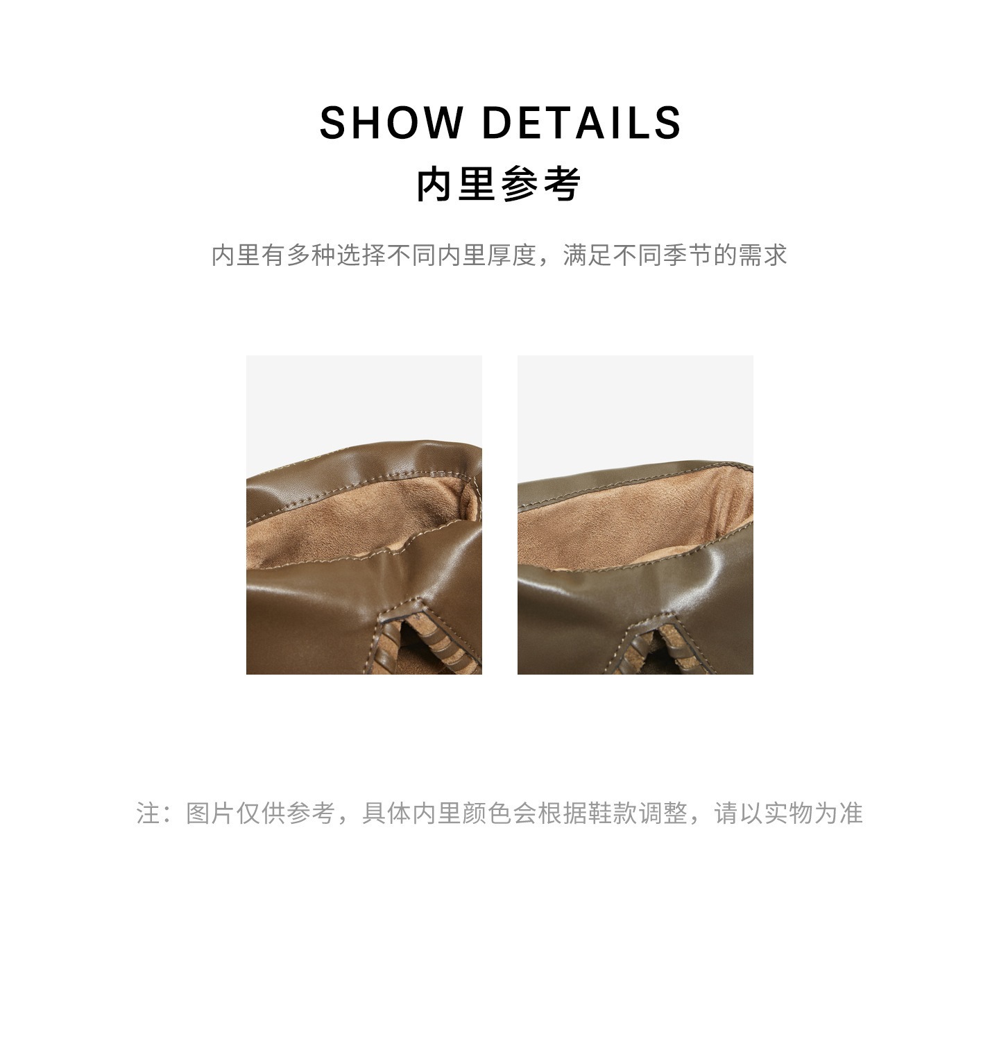| 靴筒筒面材质:牛剖层革 | 里料材质:PU革织物面料 | 制鞋工艺:胶贴皮鞋 | 鞋垫材质:猪皮革 | 款式季节:冬季 |