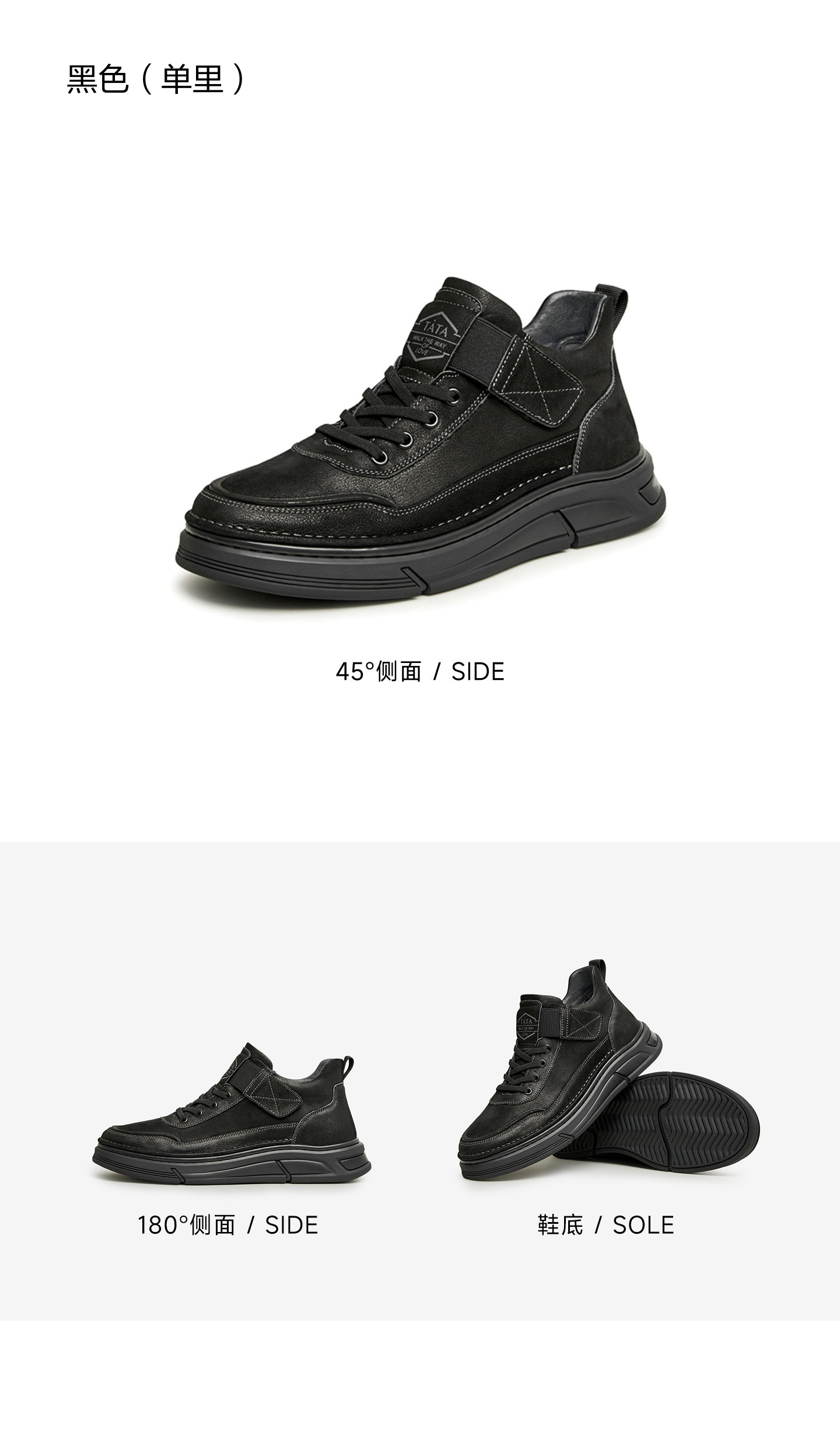 | 鞋面内里材质:猪皮革 | 跟高数值:3CM | 色系:黑色 | 性别:男子 | 筒高数值:13.5CM |