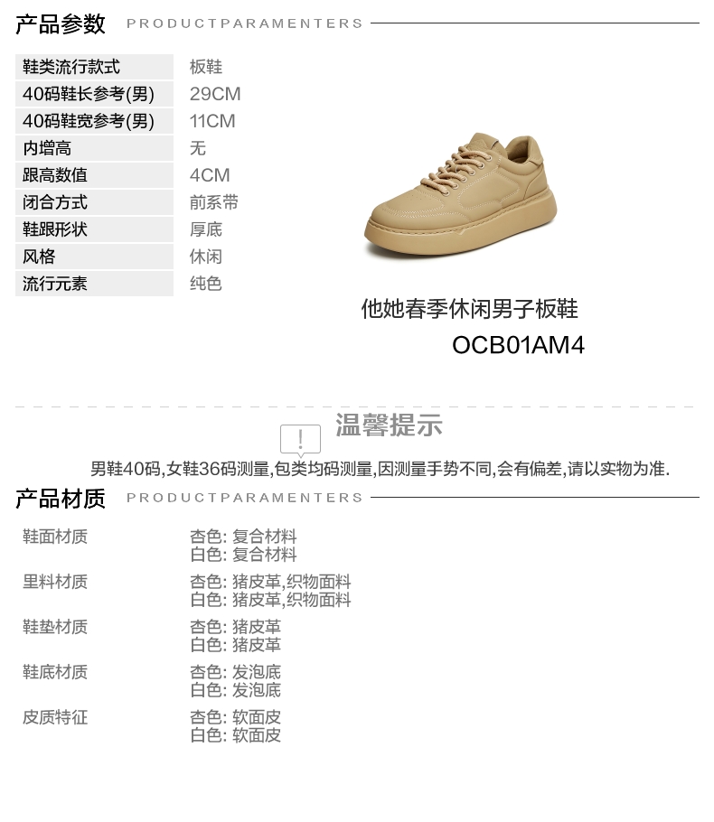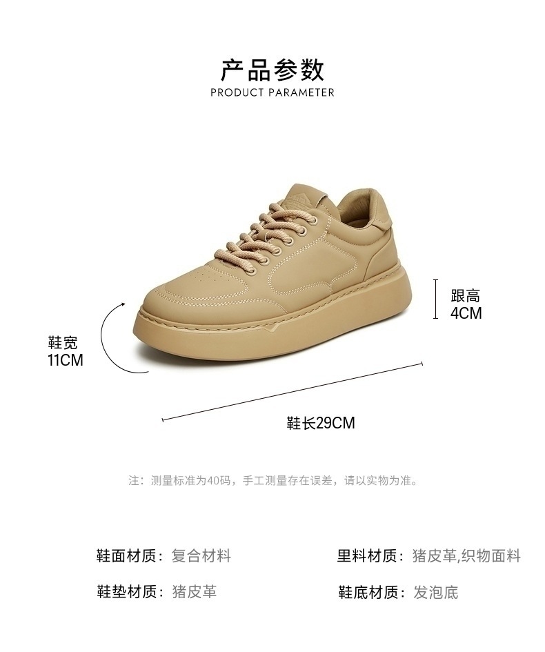 | 风格:休闲 | 色系:白色 | 跟高数值:4CM | 40码鞋宽参考(男):11CM | 性别:男子 |