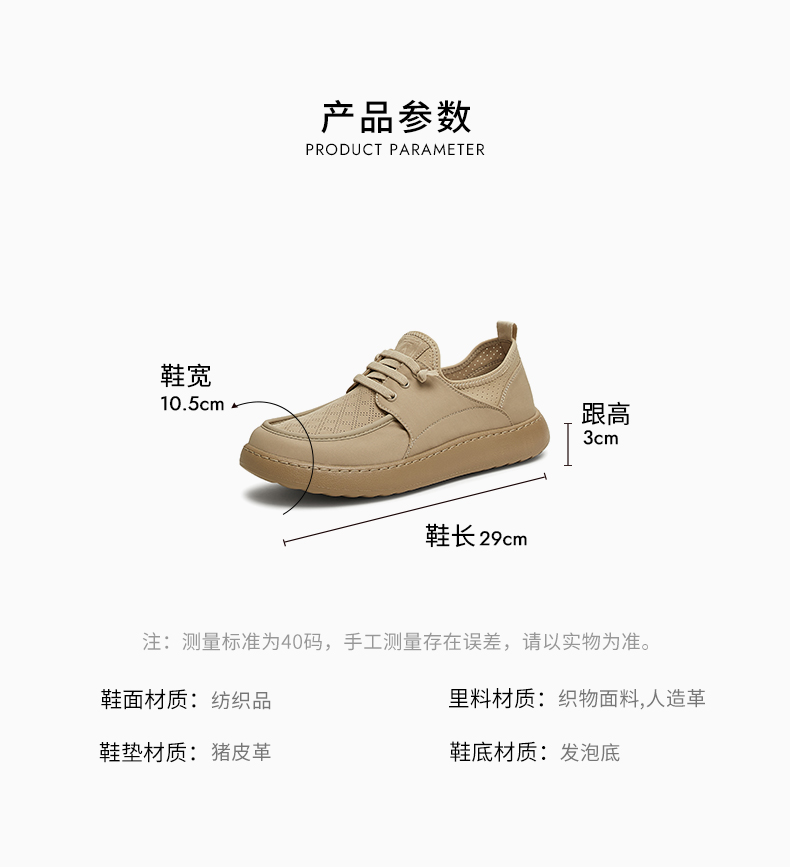 40码鞋长参考(男):29CM 鞋帮:低帮 鞋头款式:圆头 鞋底材质:发泡底 鞋面图案:纯色