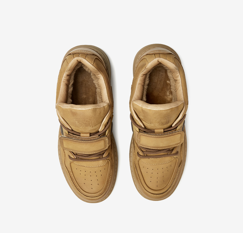 | 内增高:无 | 鞋跟形状:厚底 | 鞋面材质:牛剖层革 | 流行元素:纯色 | 闭合方式:系带魔术贴 |