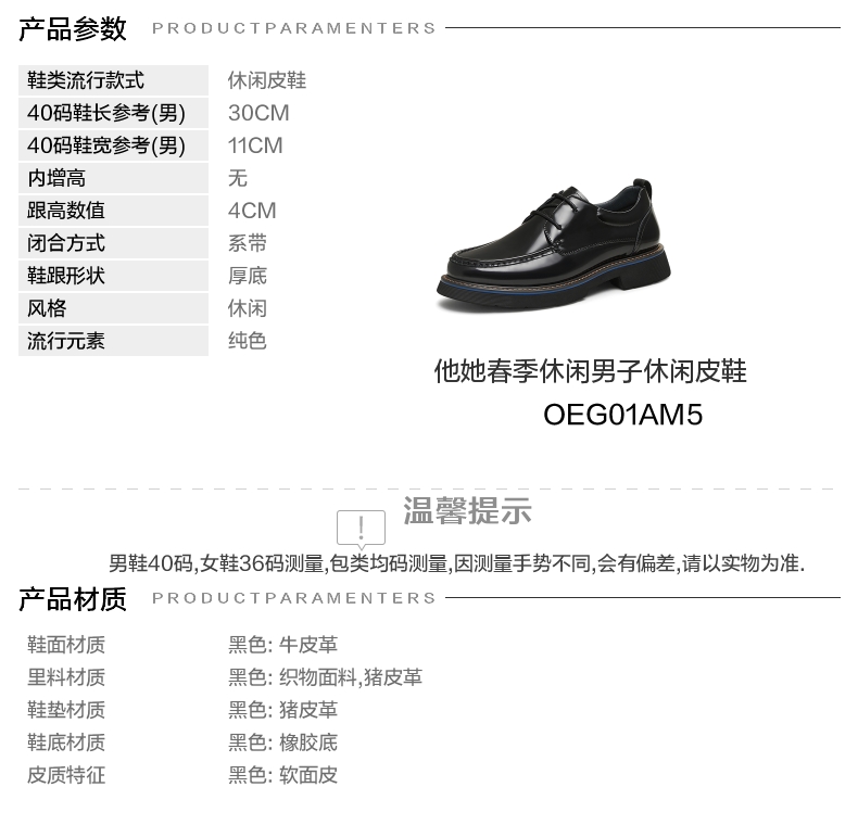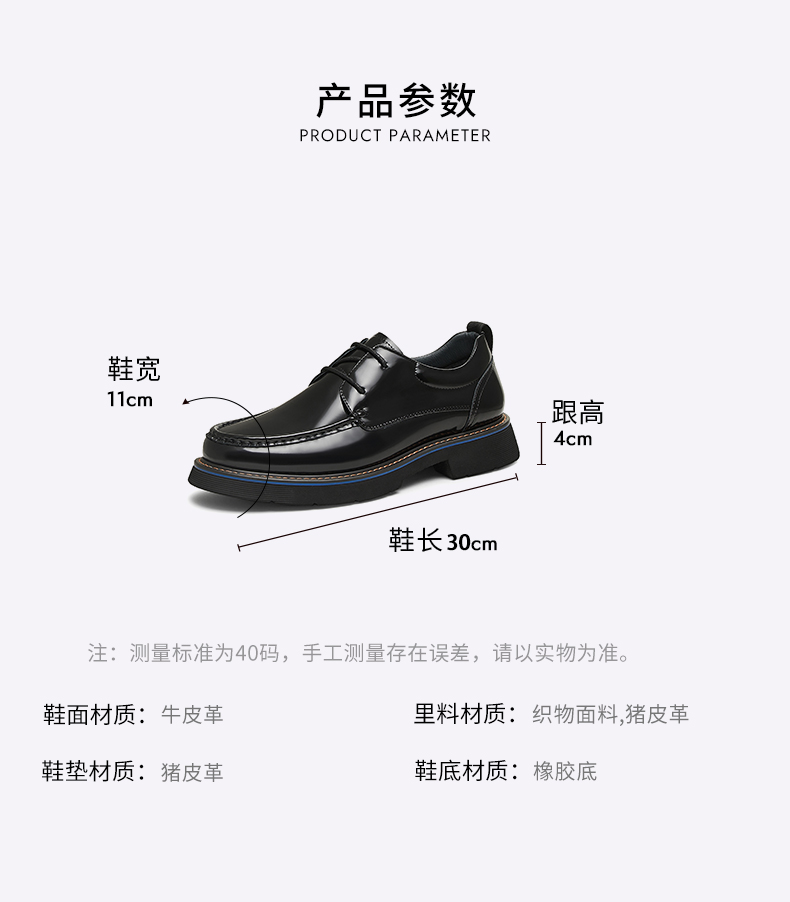 | 风格:休闲 | 色系:黑色 | 跟高数值:4CM | 40码鞋宽参考(男):11CM | 性别:男子 |