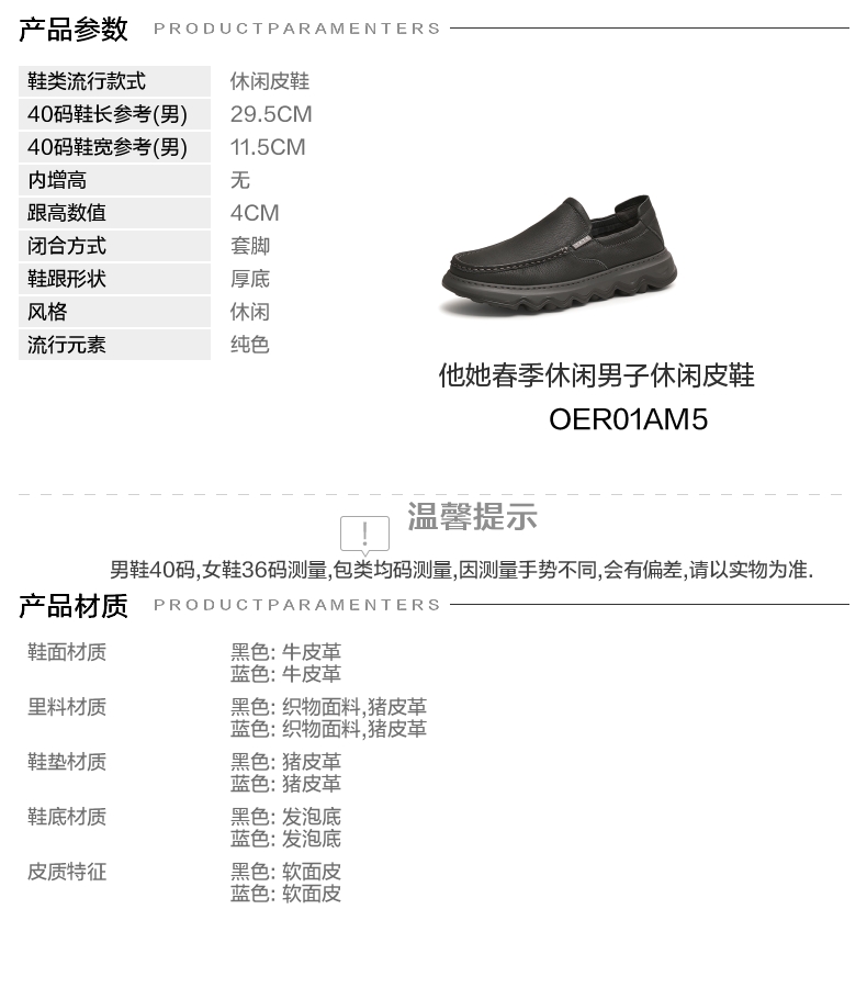 | 40码鞋长参考(男):29.5CM | 鞋帮:低帮 | 鞋底材质:发泡底 | 内增高:无 | 鞋面材质:牛皮革 |