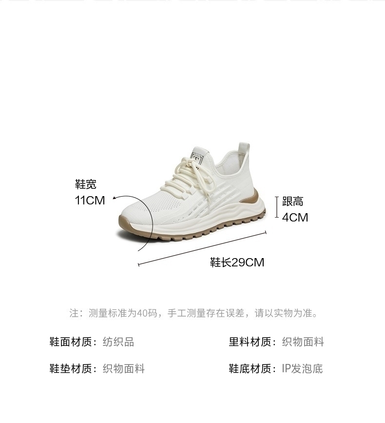 | 内增高:无 | 鞋跟形状:厚底 | 鞋面材质:纺织品 | 流行元素:撞色 | 闭合方式:系带 |