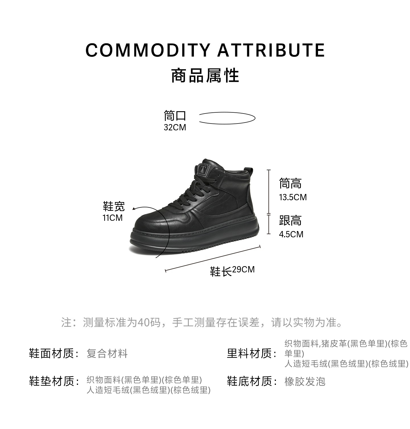 | 40码鞋长参考(男):29CM | 鞋底材质:橡胶发泡 | 靴筒内里材质:人造短毛绒 | 内增高:无 | 鞋面材质:复合材料 |