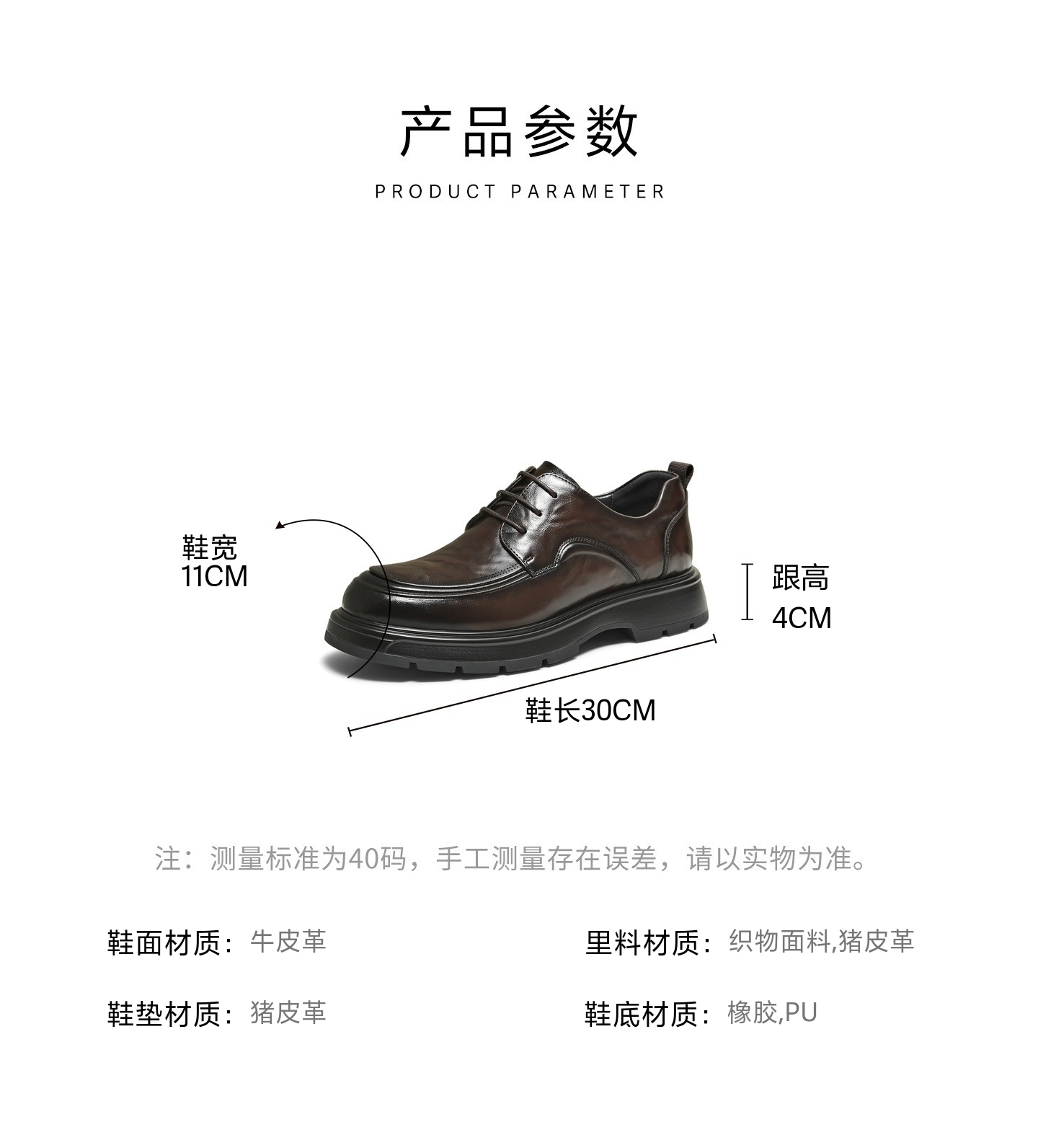 | 风格:休闲 | 色系:咖啡色 | 跟高数值:4CM | 40码鞋宽参考(男):11CM | 性别:男子 |