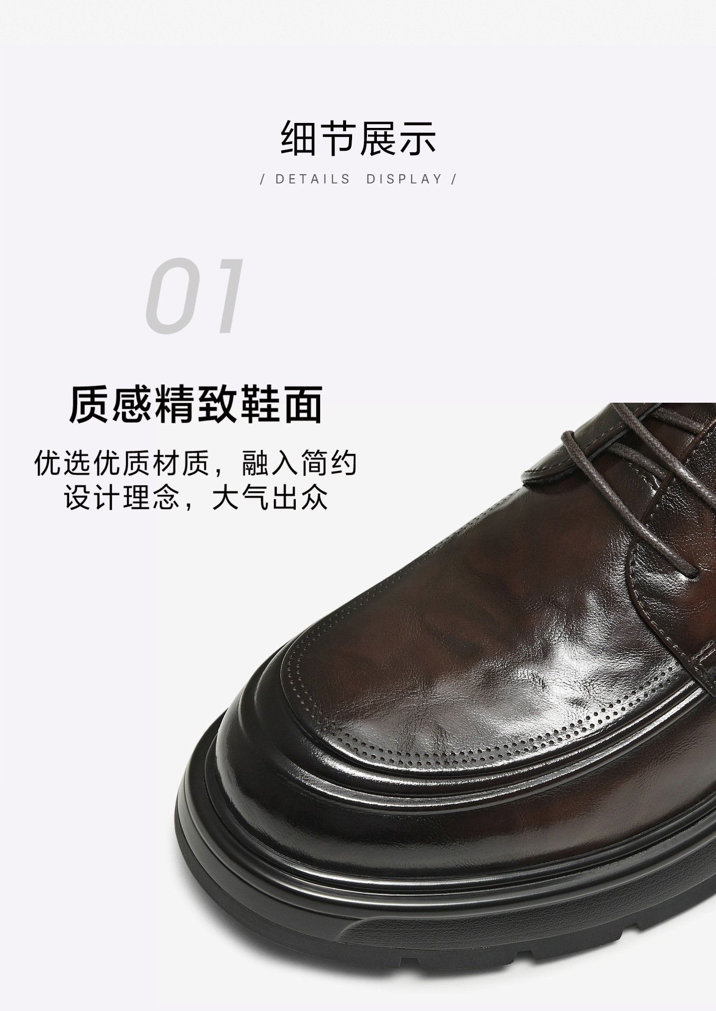 | 内增高:无 | 鞋跟形状:厚底 | 鞋面材质:牛皮革 | 流行元素:纯色 | 闭合方式:系带 |
