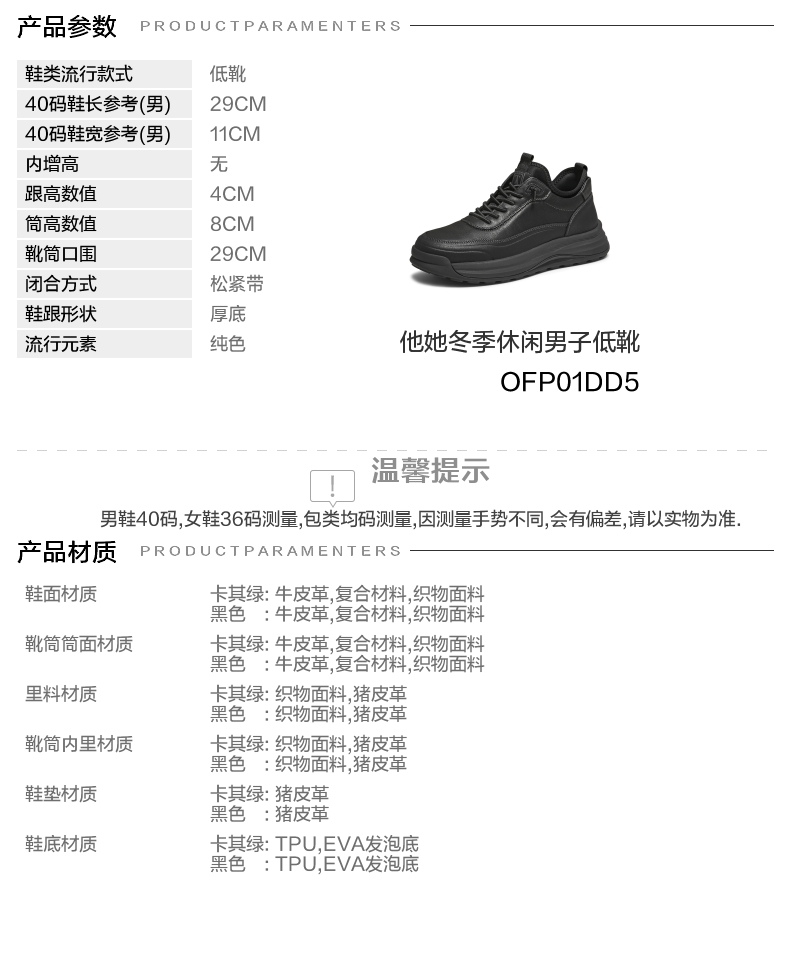 | 闭合方式:松紧带 | 40码鞋宽参考(男):11CM | 靴筒口围:29CM | 上市时间:2025年冬季 | 鞋类流行款式:低靴 |