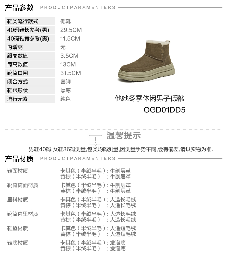 | 闭合方式:套脚 | 40码鞋宽参考(男):11.5CM | 靴筒口围:31.5CM | 上市时间:2025年冬季 | 鞋类流行款式:低靴 |