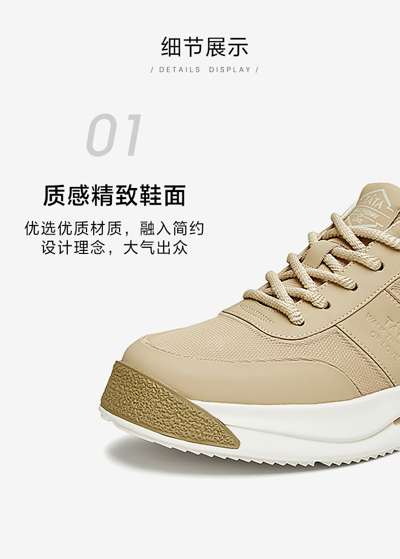 | 内增高:无 | 鞋跟形状:厚底 | 鞋面材质:人造革纺织品 | 流行元素:撞色 | 闭合方式:系带 |