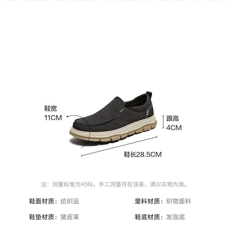 | 风格:休闲 | 色系:灰色 | 跟高数值:4CM | 40码鞋宽参考(男):11CM | 性别:男子 |
