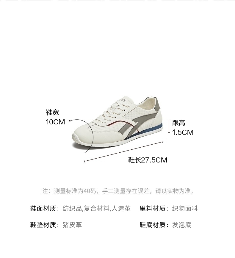 | 40码鞋长参考(男):27.5CM | 鞋帮:低帮 | 鞋头款式:圆头 | 鞋底材质:发泡底 | 鞋面图案:拼色 |