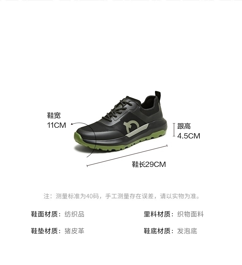 | 风格:休闲 | 色系:杏色 | 跟高数值:4.5CM | 40码鞋宽参考(男):11CM | 性别:男子 |