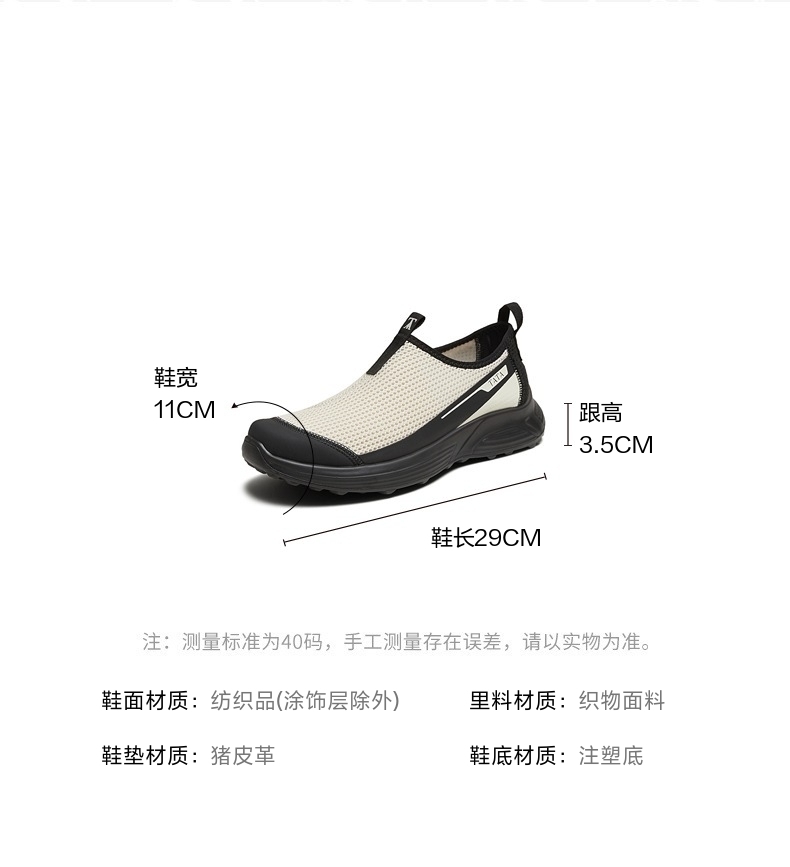 | 色系:拼色 | 跟高数值:3.5CM | 40码鞋宽参考(男):11CM | 性别:男子 | 里料材质:织物面料 |