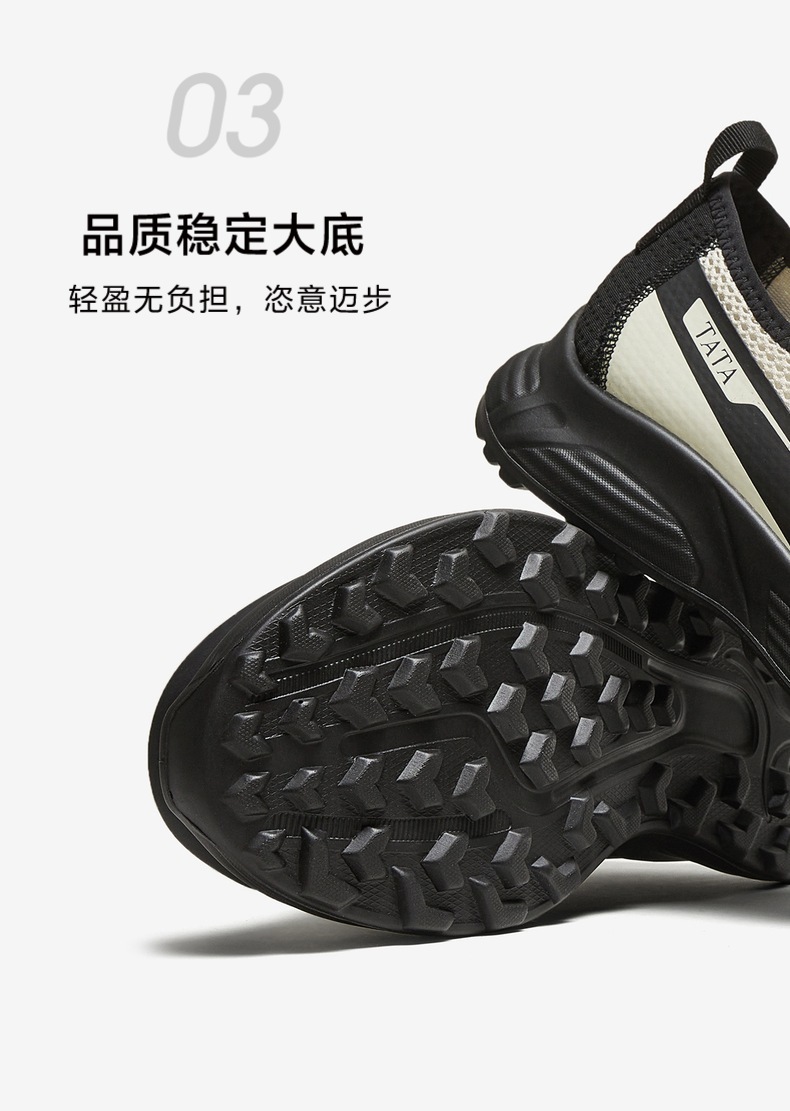 他她(Tata),品牌成立于2003年,致力为都市年轻人群提供时尚潮流、具有性价比的鞋履产品。十五年来“踏踏”的着地声,寓意都市白领元气满满的生活,如时尚“伴履”的TATA一直陪伴左右、伴随走出TATA的时尚步伐。2017年TATA美丽蜕变,TATA STAR元素的加入预示品牌将成为闪亮、前端的时尚鞋履品牌。
