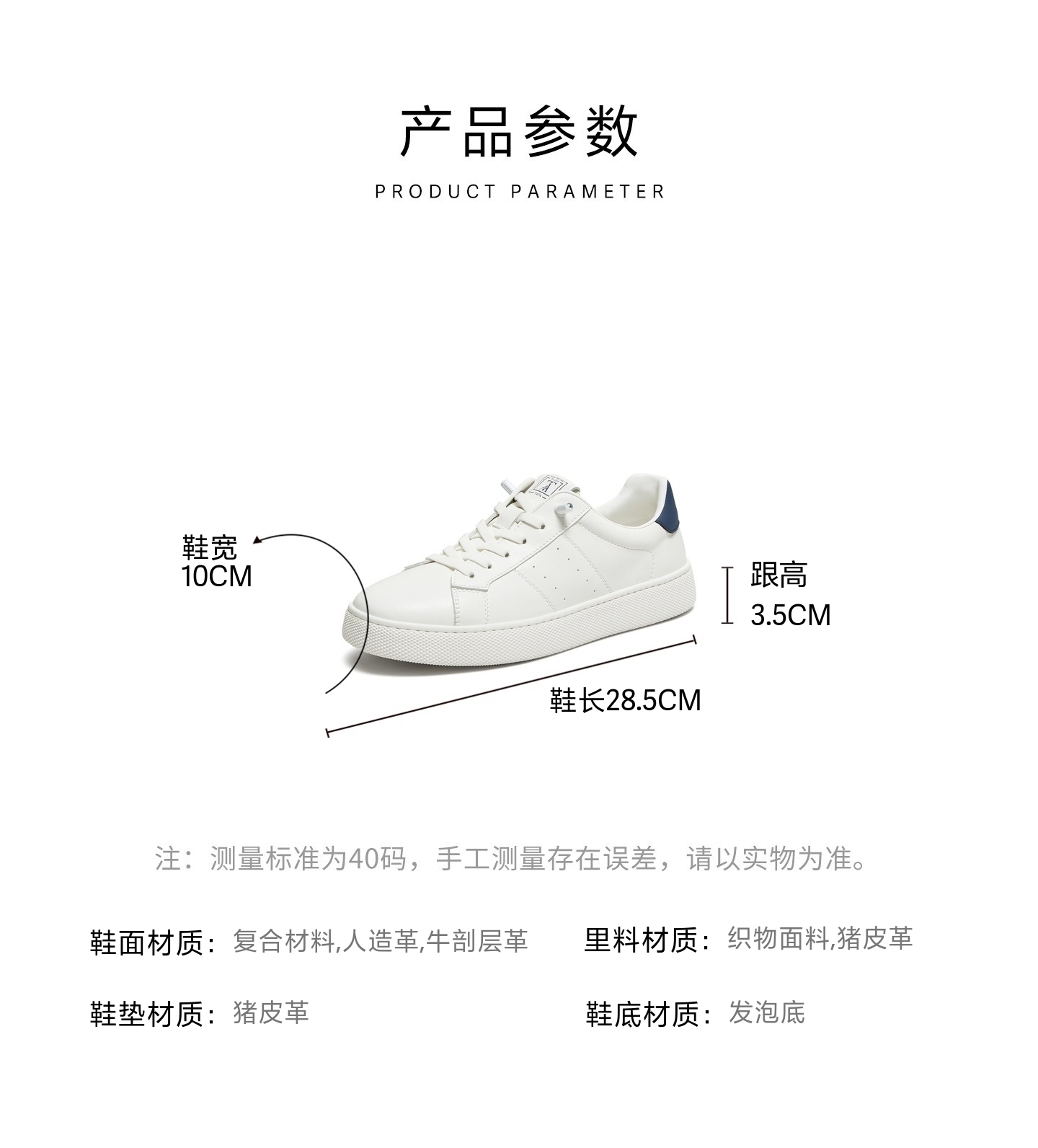 | 风格:休闲 | 色系:拼色 | 跟高数值:3.5CM | 40码鞋宽参考(男):10CM | 性别:男子 |