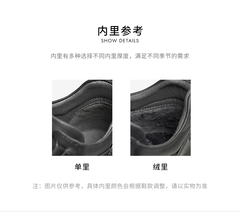 | 里料材质:猪皮革织物面料 | 制鞋工艺:胶贴皮鞋 | 鞋垫材质:人造短毛绒 | 款式季节:冬季 | 皮质特征:软面皮 |