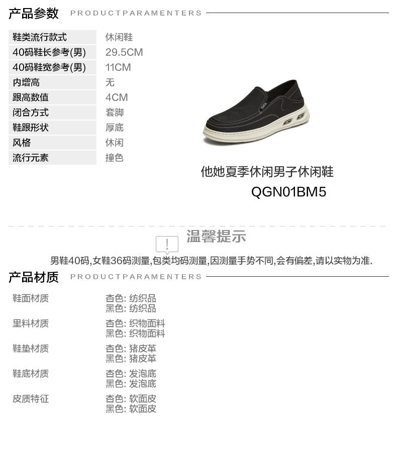 | 风格:休闲 | 色系:杏色 | 跟高数值:4CM | 40码鞋宽参考(男):11CM | 性别:男子 |