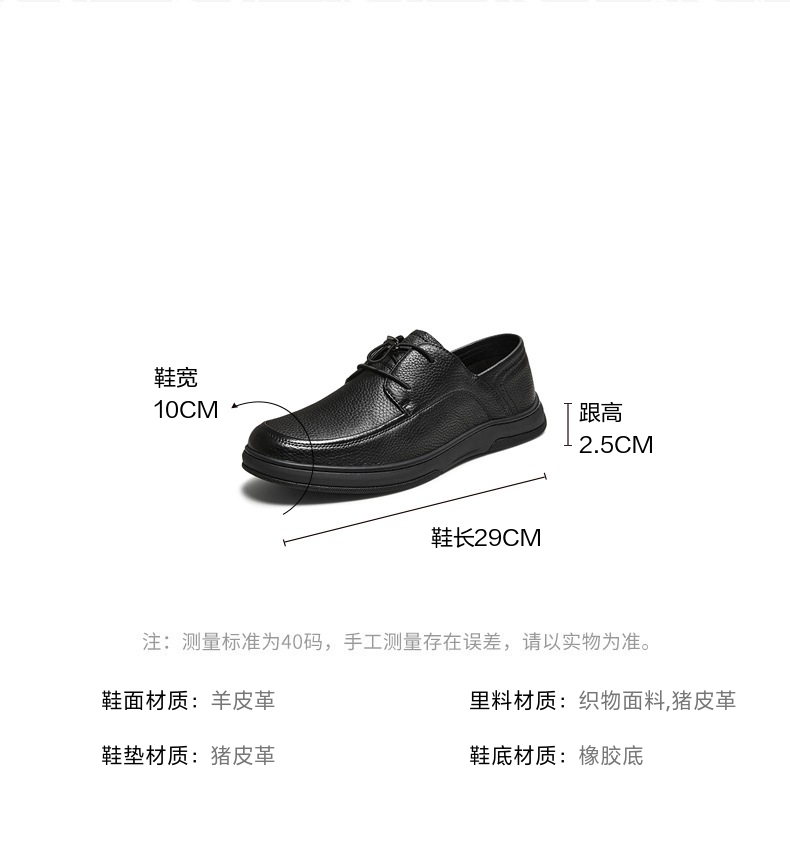 | 风格:休闲 | 色系:黑色 | 跟高数值:2.5CM | 40码鞋宽参考(男):10CM | 性别:男子 |