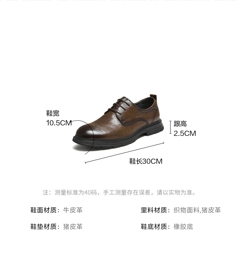 | 风格:休闲 | 色系:棕色 | 跟高数值:2.5CM | 40码鞋宽参考(男):10.5CM | 性别:男子 |