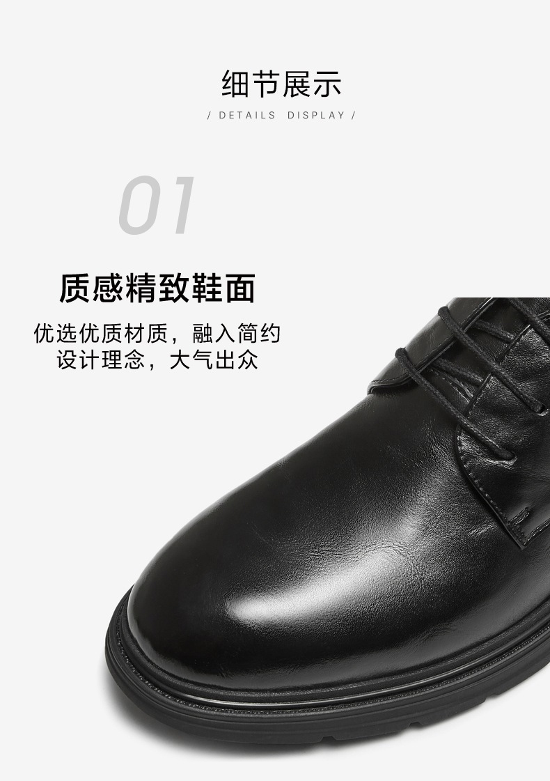 | 内增高:无 | 鞋跟形状:粗跟 | 鞋面材质:牛皮革 | 流行元素:纯色 | 闭合方式:系带 |