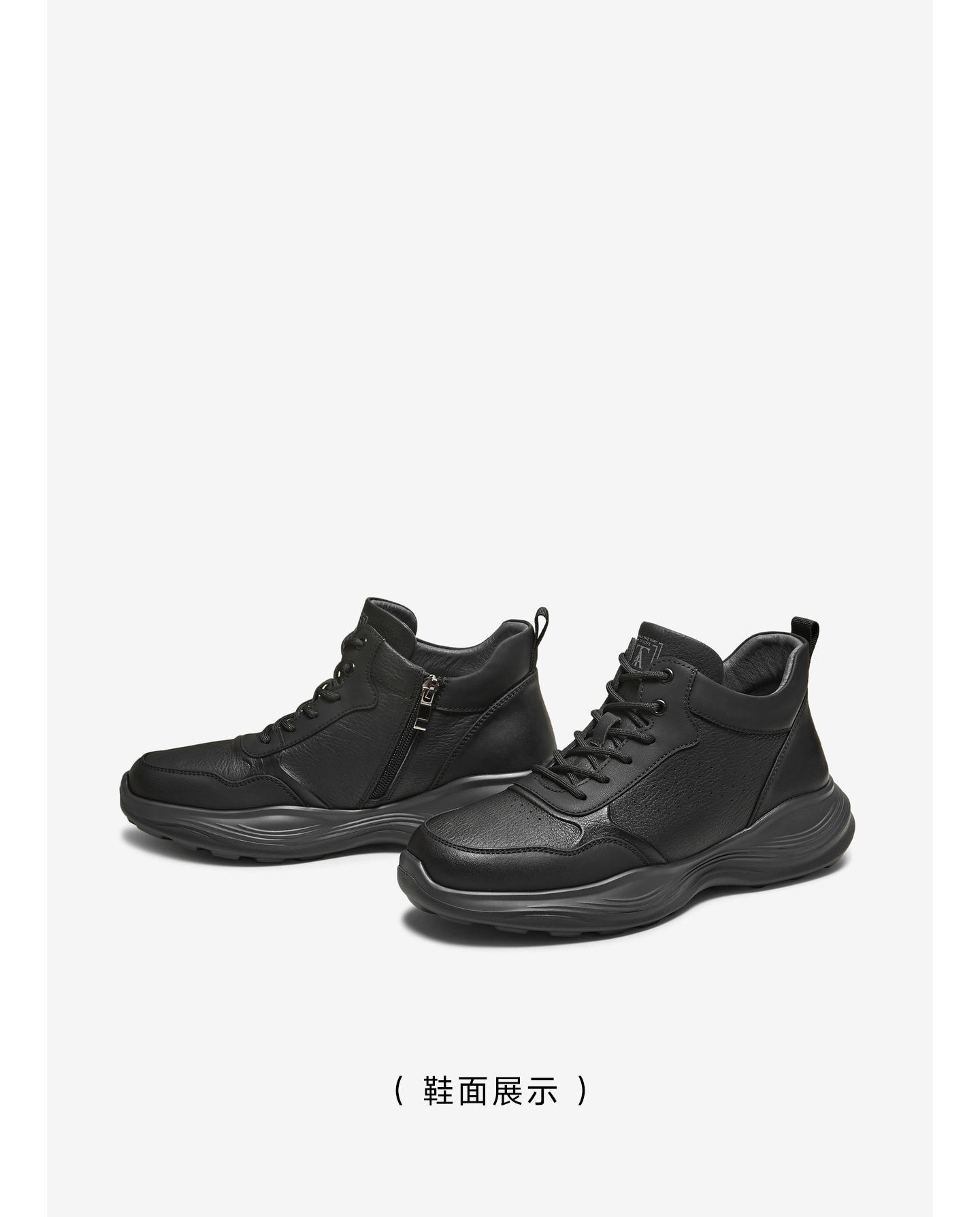 | 鞋面内里材质:猪皮革 | 跟高数值:3CM | 色系:黑色 | 性别:男子 | 筒高数值:8.5CM |