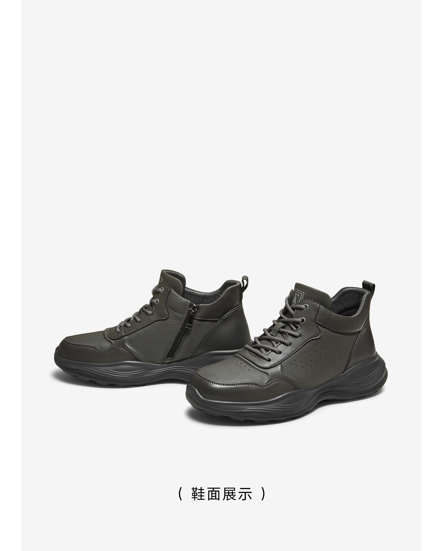 | 鞋面内里材质:猪皮革 | 跟高数值:3CM | 色系:灰色 | 性别:男子 | 筒高数值:8.5CM |