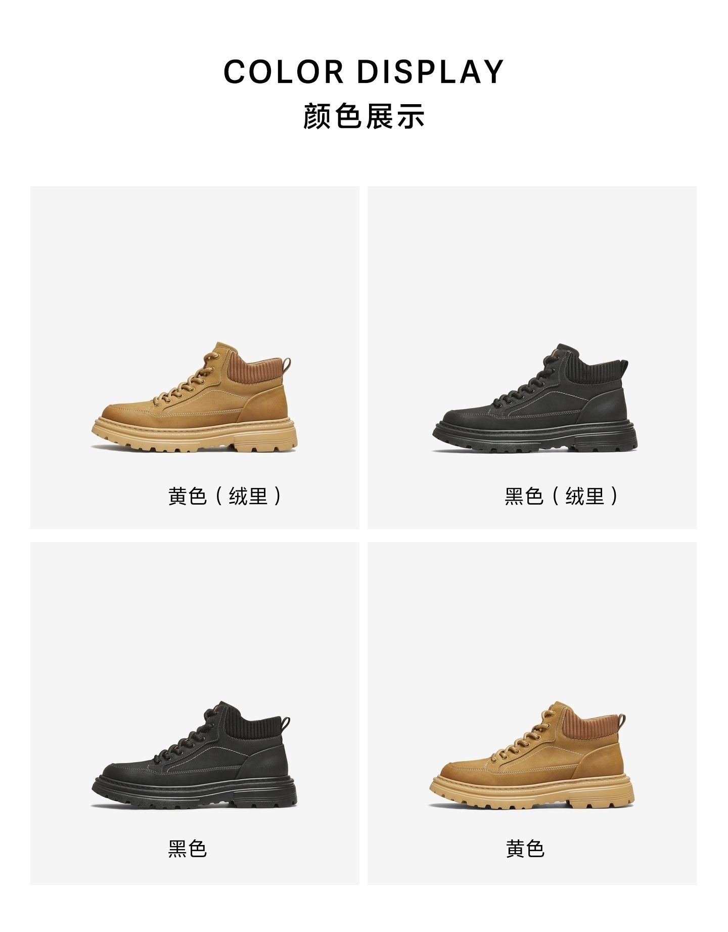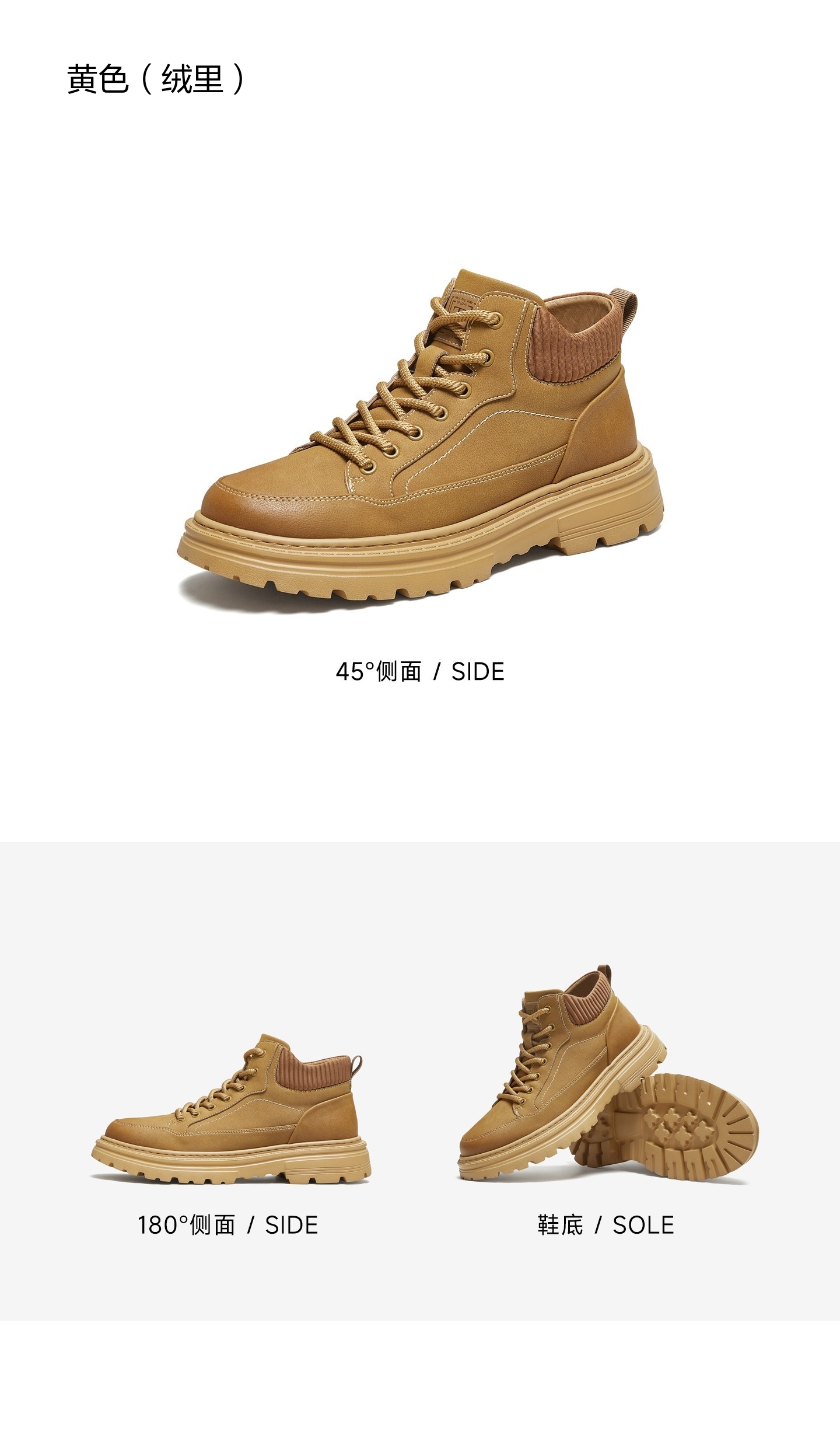 | 鞋面内里材质:猪皮革 | 跟高数值:4CM | 色系:黄色 | 性别:男子 | 筒高数值:9CM |