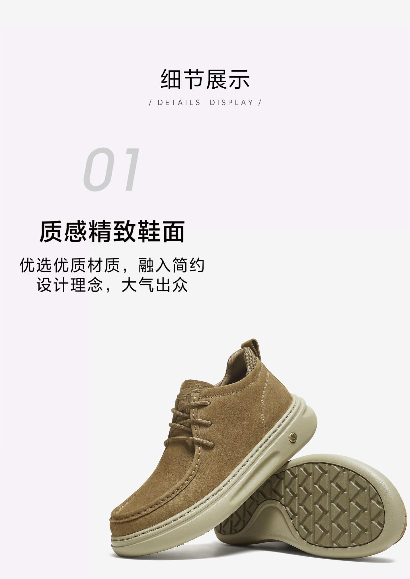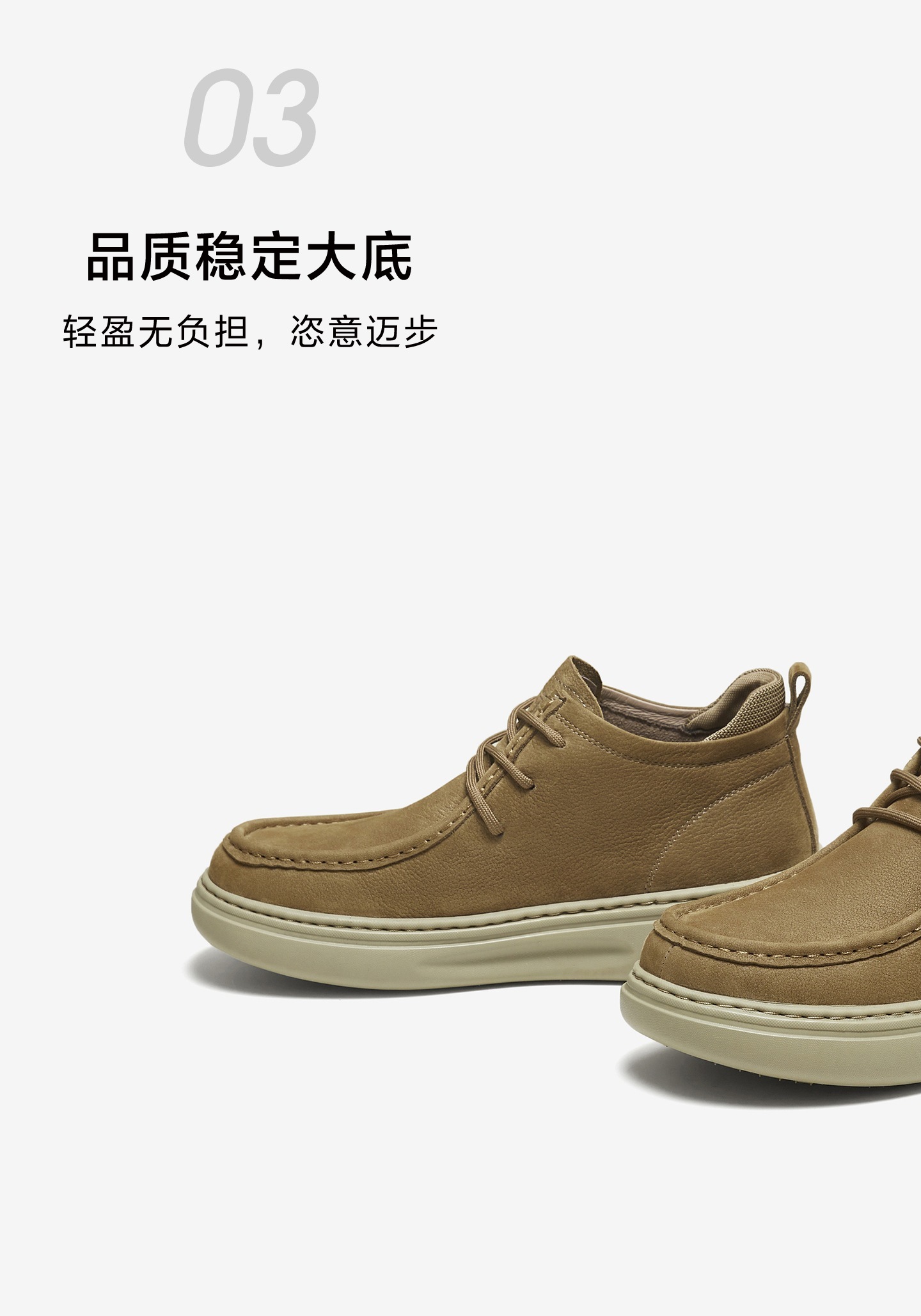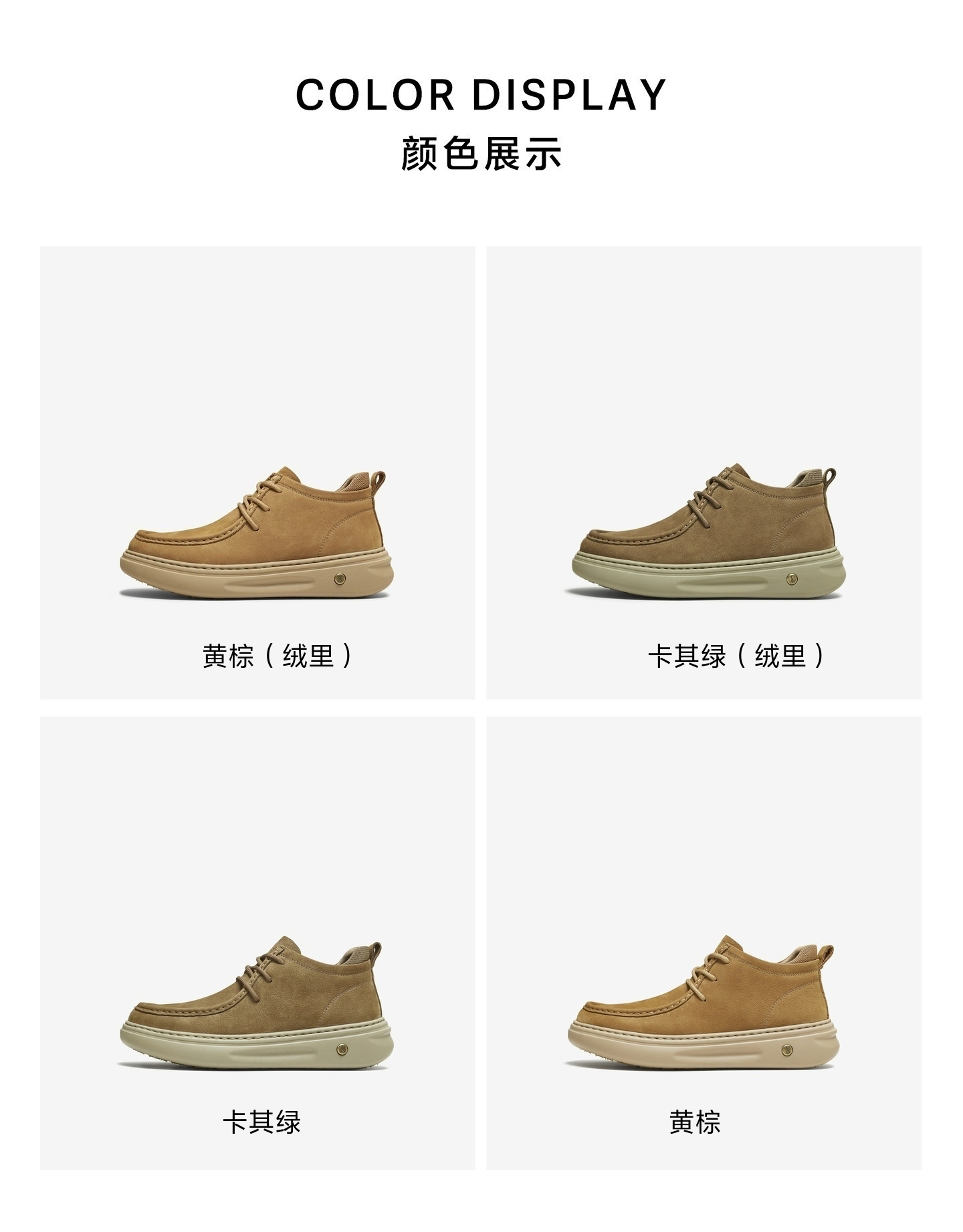 | 鞋面内里材质:猪皮革 | 跟高数值:5CM | 色系:卡其 | 性别:男子 | 筒高数值:8CM |