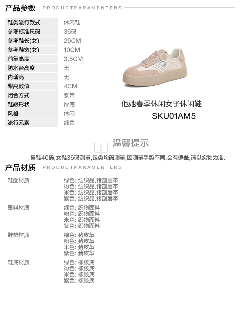| 款式季节:春季 | 鞋垫材质:猪皮革 | 渠道划分:电商专销 | 前掌高度:3.5CM | 皮质特征:软面皮 |