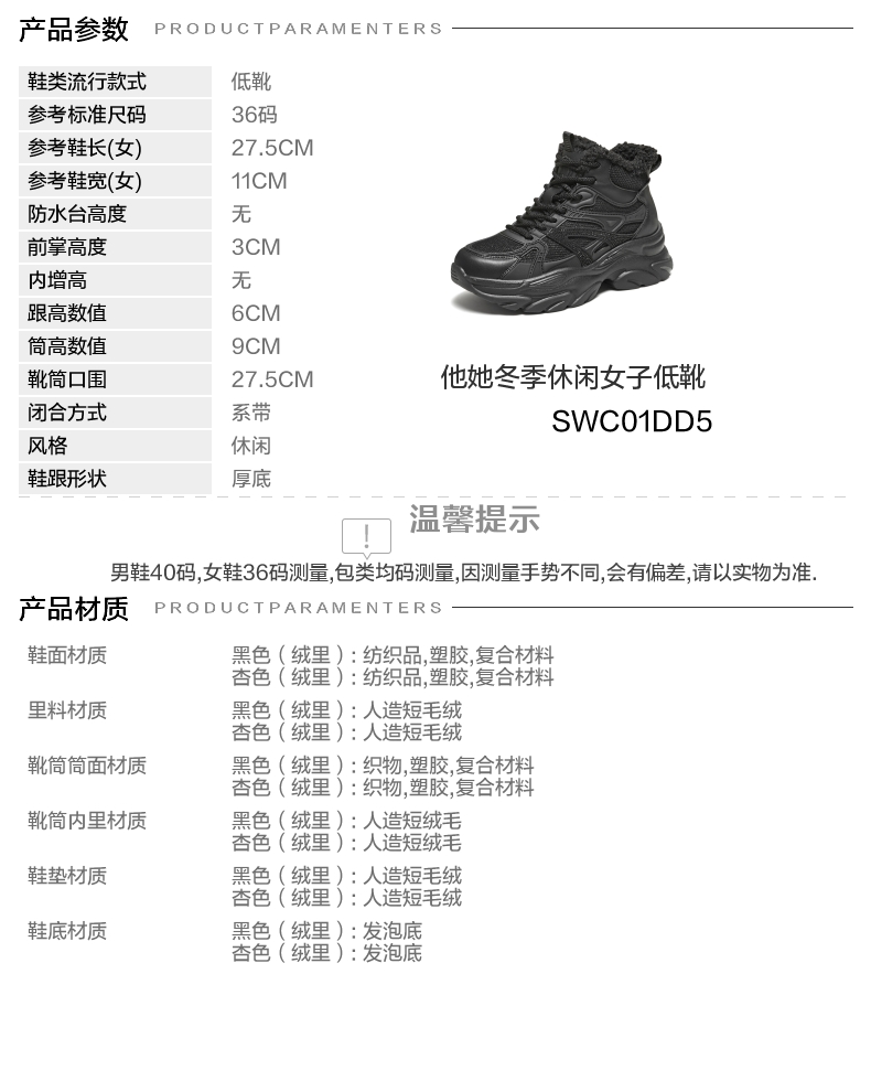 | 参考鞋宽(女):11CM | 风格:休闲 | 色系:黑色 | 跟高数值:6CM | 筒高数值:9CM |