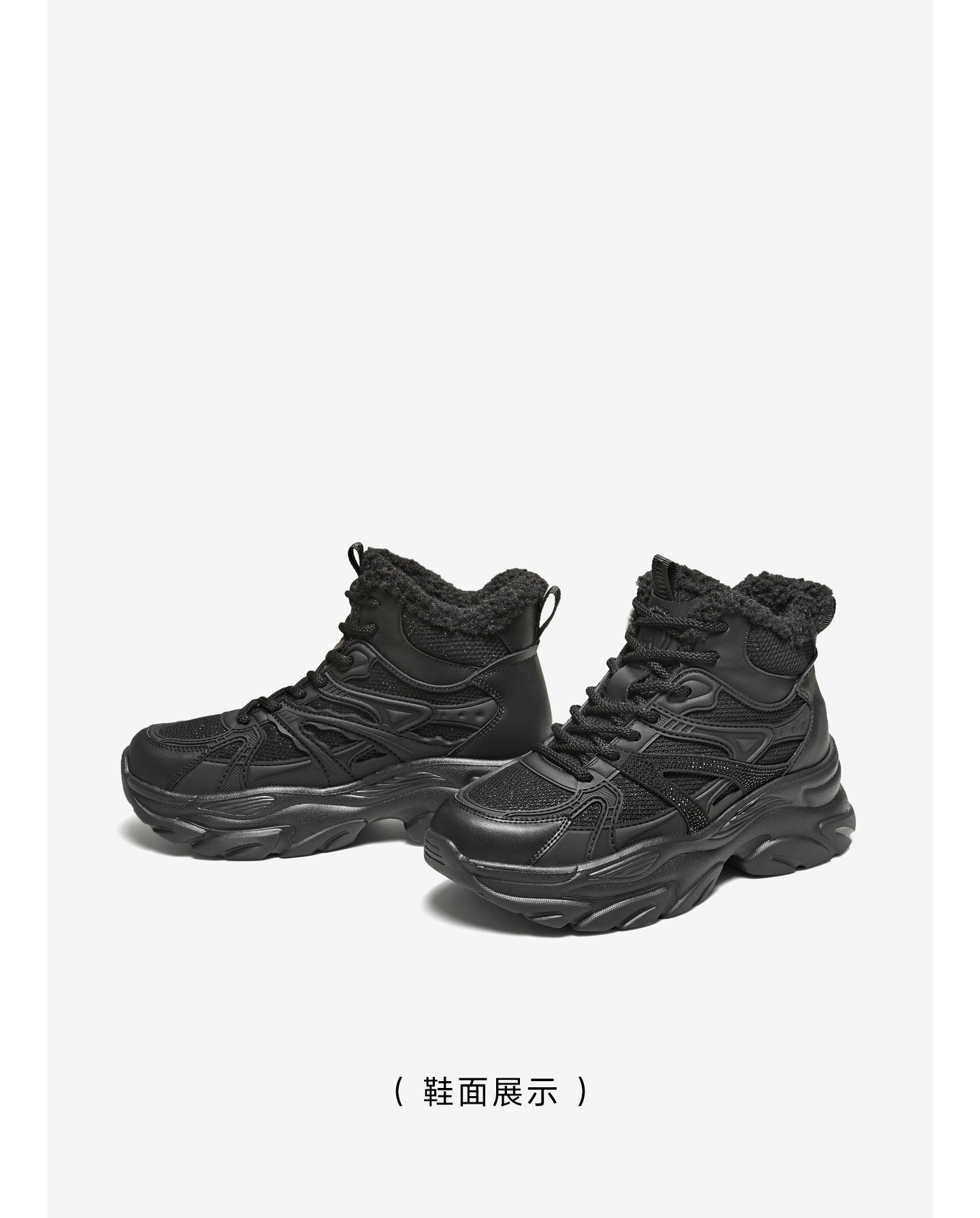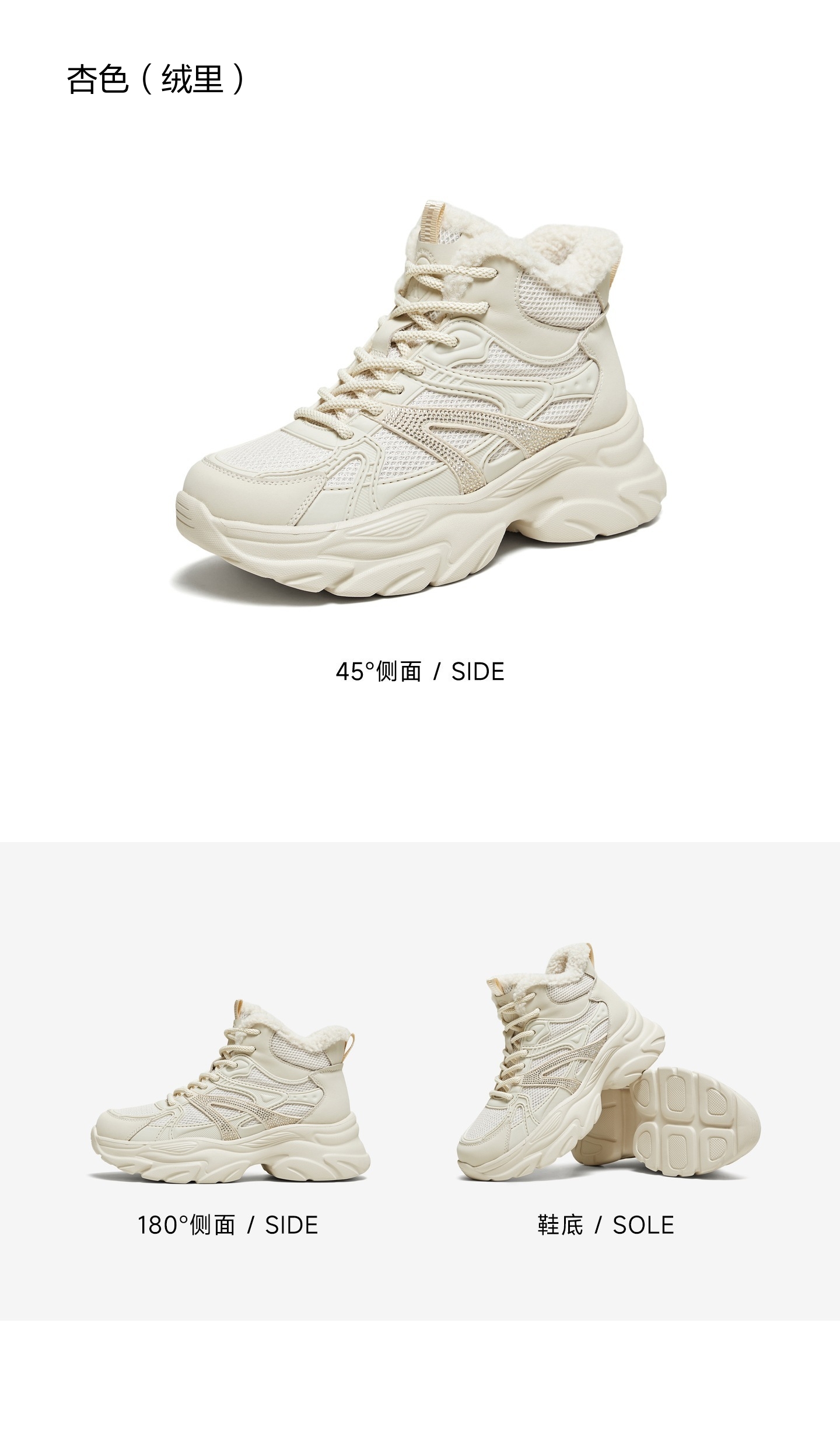 | 鞋底材质:发泡底 | 靴筒内里材质:人造短绒毛 | 内增高:无 | 鞋面材质:纺织品复合材料塑胶 | 闭合方式:系带 |