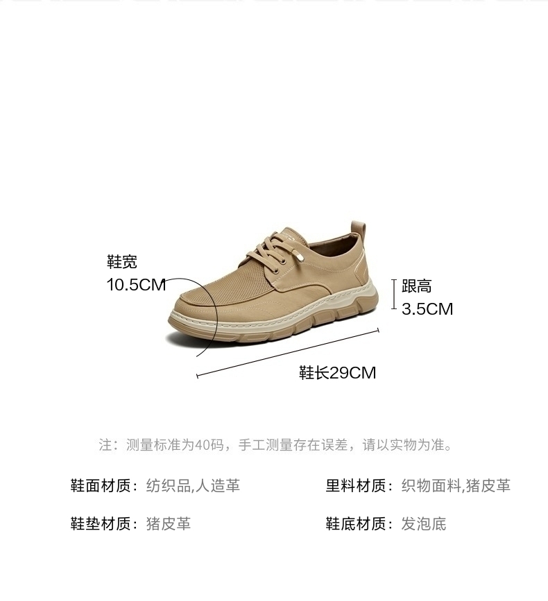 40码鞋长参考(男):29CM 鞋帮:低帮 鞋底材质:发泡底 内增高:无 鞋面材质:人造革纺织品