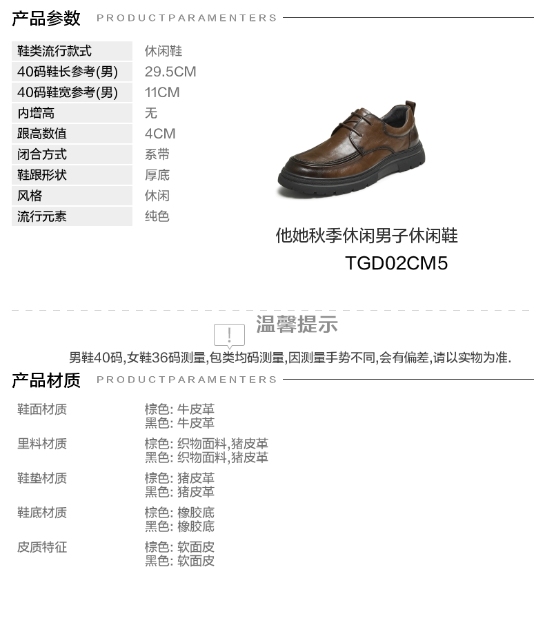 | 风格:休闲 | 色系:棕色 | 跟高数值:4CM | 40码鞋宽参考(男):11CM | 性别:男子 |