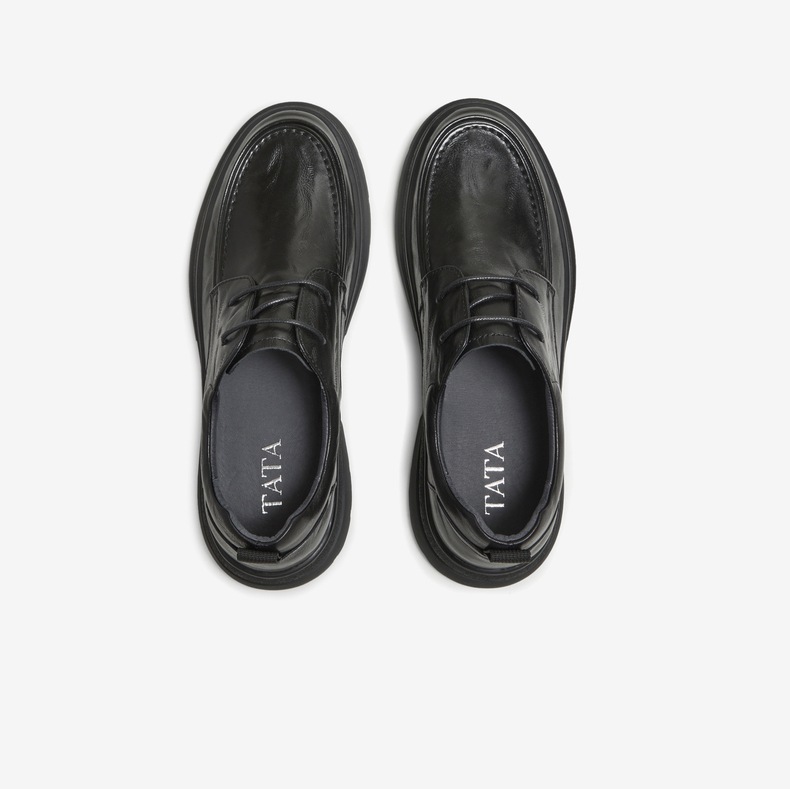 | 内增高:无 | 鞋跟形状:厚底 | 鞋面材质:牛皮革 | 流行元素:纯色 | 闭合方式:系带 |