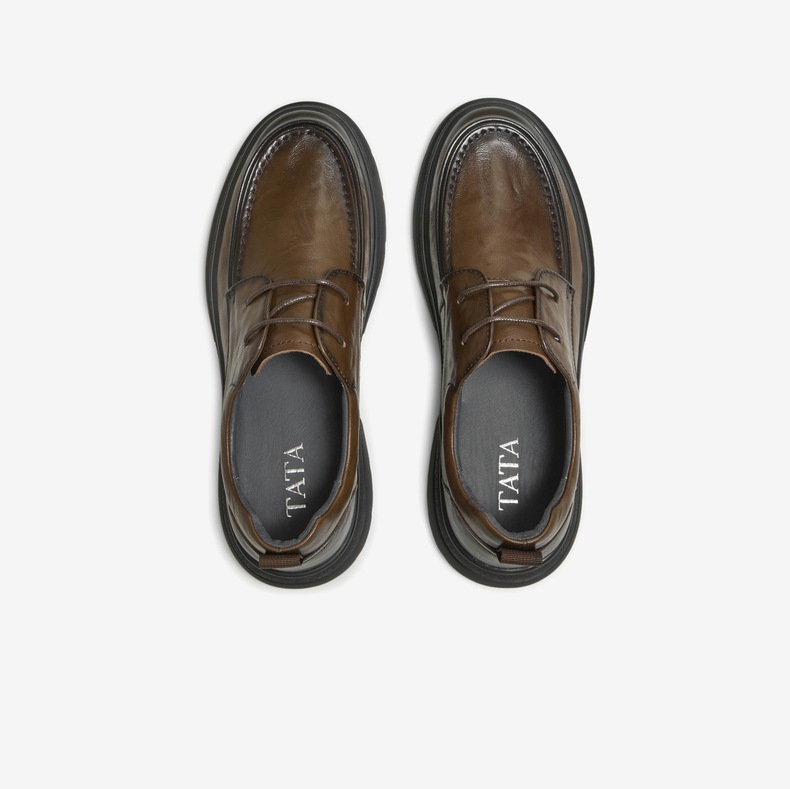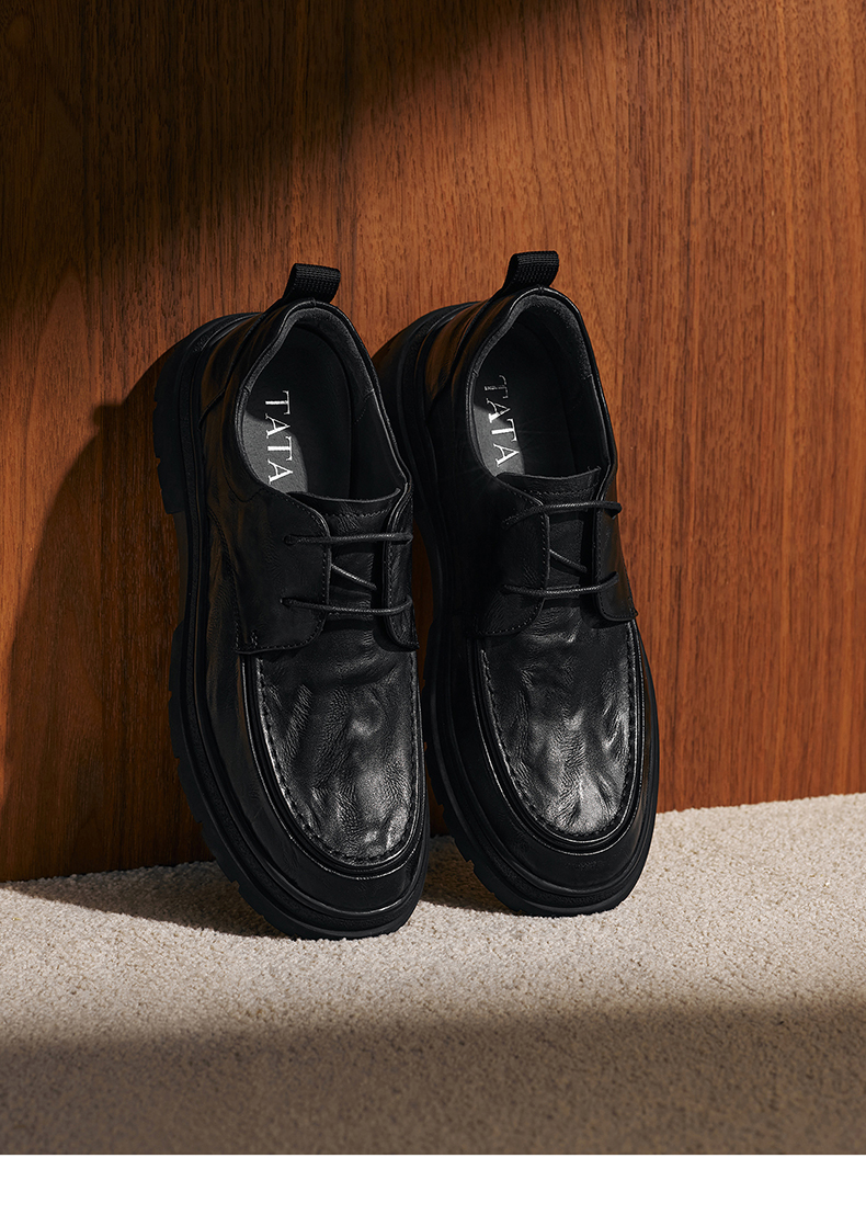 | 内增高:无 | 鞋跟形状:厚底 | 鞋面材质:牛皮革 | 流行元素:纯色 | 闭合方式:系带 |