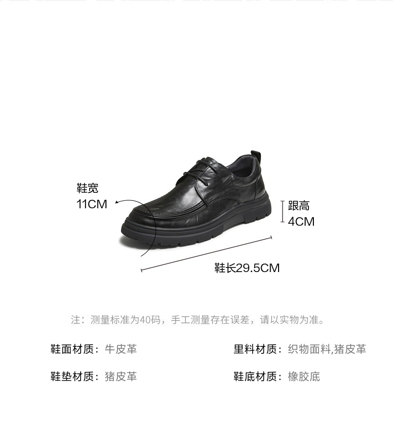 | 风格:休闲 | 色系:黑色 | 跟高数值:4CM | 40码鞋宽参考(男):11CM | 性别:男子 |