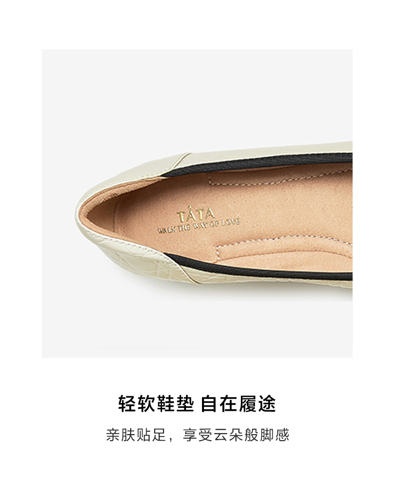 他她(Tata),品牌成立于2003年,致力为都市年轻人群提供时尚潮流、具有性价比的鞋履产品。十五年来“踏踏”的着地声,寓意都市白领元气满满的生活,如时尚“伴履”的TATA一直陪伴左右、伴随走出TATA的时尚步伐。2017年TATA美丽蜕变,TATA STAR元素的加入预示品牌将成为闪亮、前端的时尚鞋履品牌。